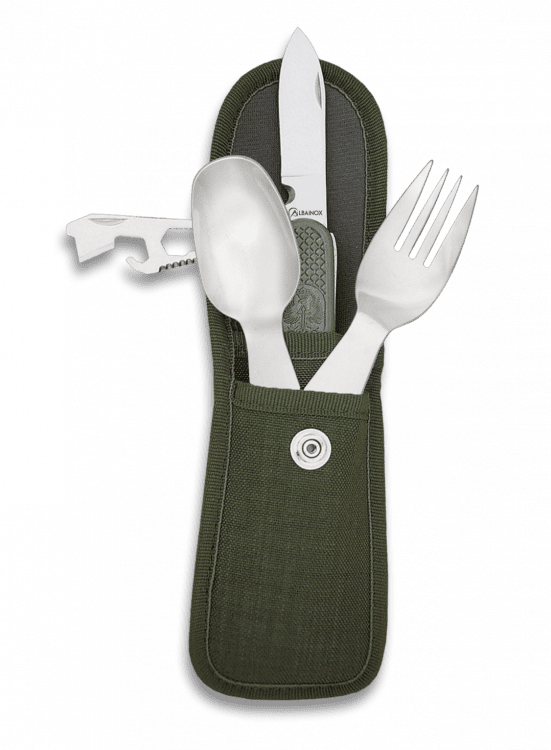 Et praktisk og kompakt bestiksæt til camping og outdoor, hvor du får ske, gaffel og multiværktøj samlet i én løsning. Perfekt til ture i naturen, festivaler eller når du bare vil have en smart alt-i-én løsning med på farten.