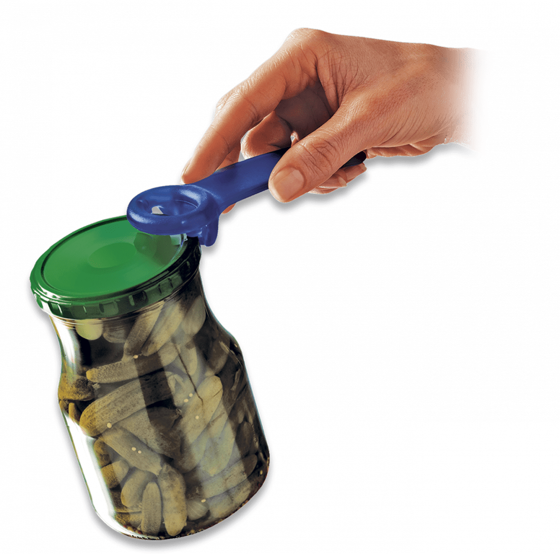 Slip for besværet med stramme låg. Denne lågåbner er et enkelt og effektivt redskab, der gør det let at åbne glas – uden at bruge unødig kraft.