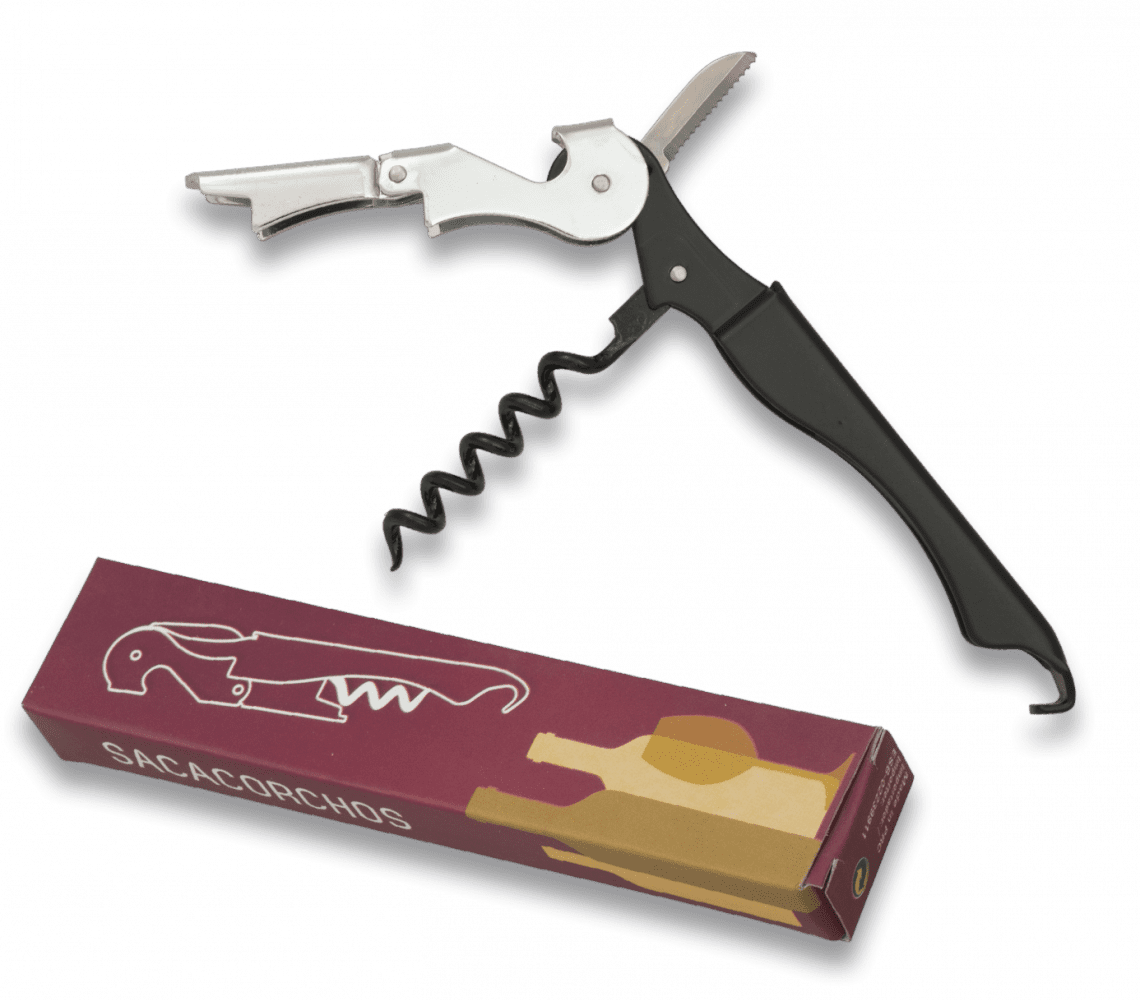 Udover proptrækkeren får du også en integreret kapselskærer og flaskeåbner, så du har flere funktioner samlet i ét værktøj.