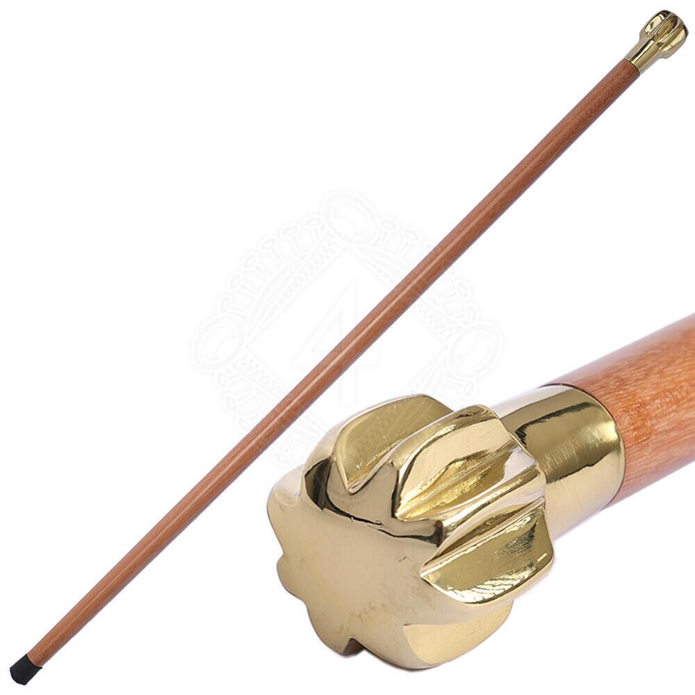 Stokken er fremstillet med fokus på enkelhed og styrke i udtrykket. Det glatte hårdttræsskaft giver en varm og naturlig kontrast til det blanke messinghoved, som er formet efter en klassisk middelalderkølle. Kombinationen skaber et tidløst look, der passer både i traditionelle og moderne omgivelser.