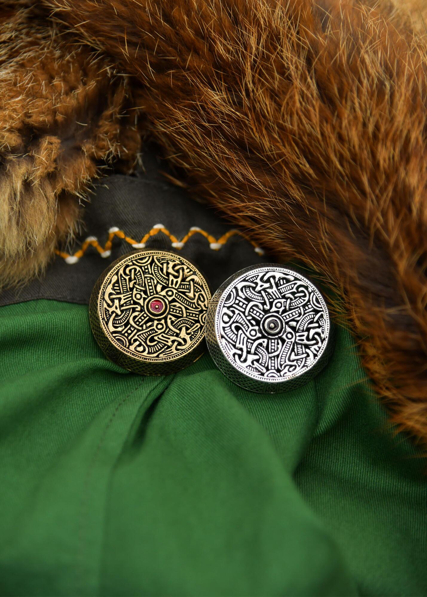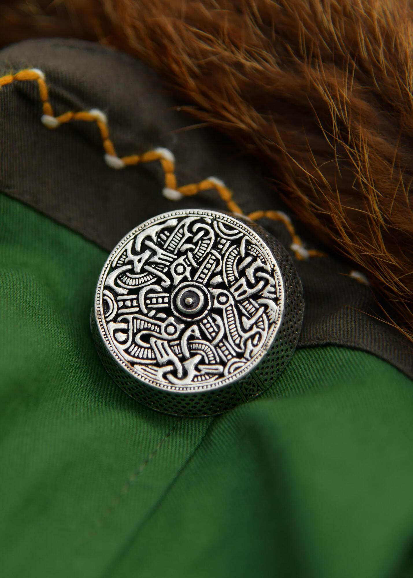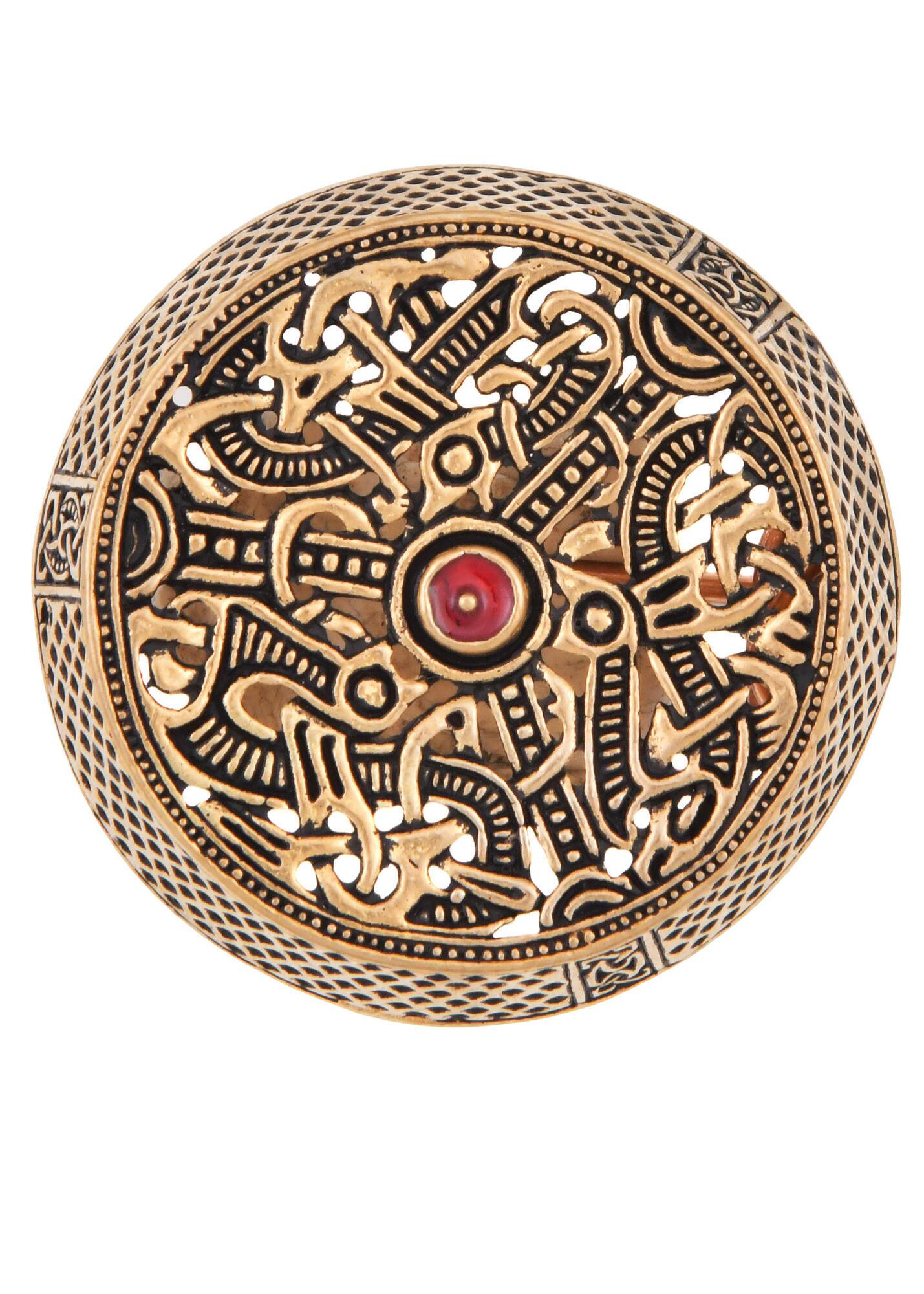 Denne replika er fremstillet uden bundplade for at holde vægten nede og gøre brochen mere prisvenlig, samtidig med at det historiske udtryk bevares. Den fungerer både som praktisk dragtspænde og som dekorativt smykke.