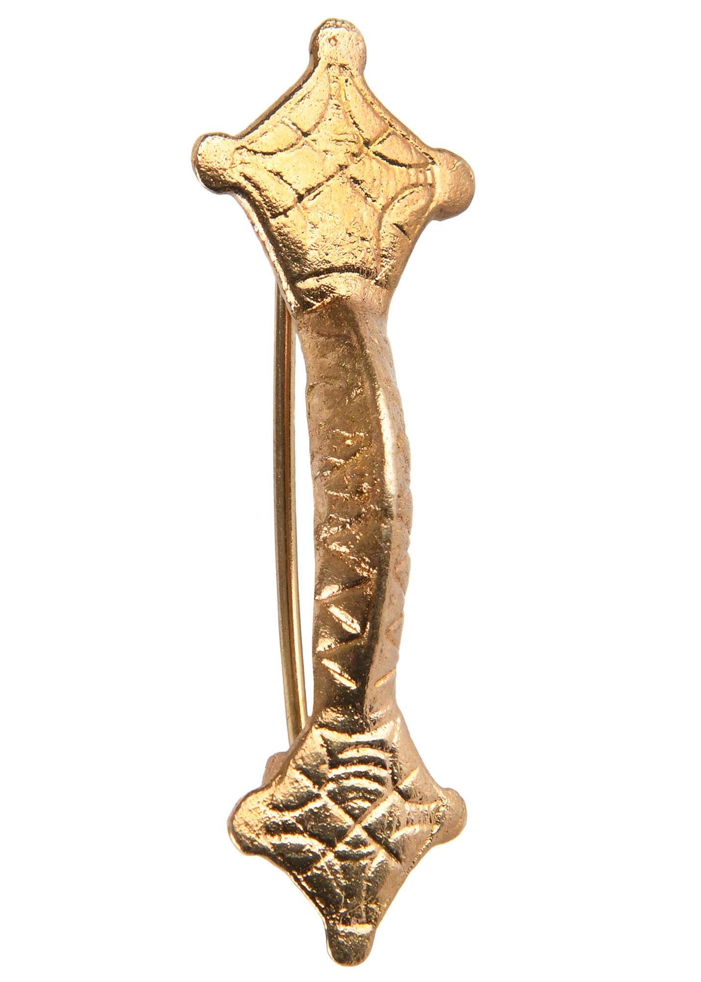 Fibulaen er fremstillet i messing og har et klassisk historisk udtryk, der passer godt til middelalderinspireret påklædning. Samtidig kan den også bæres som et diskret og dekorativt smykke i hverdagen.