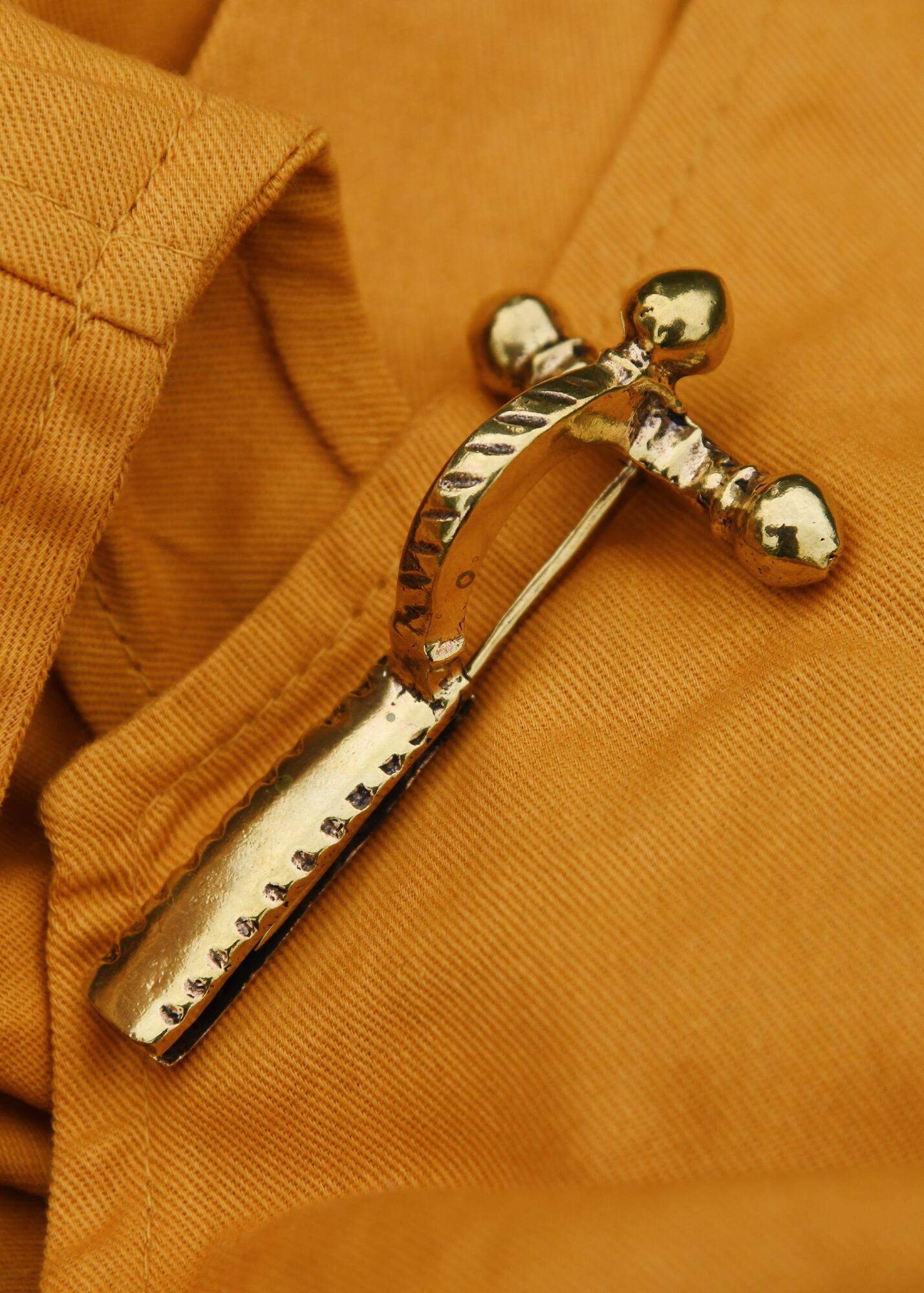 Denne model er fremstillet i bronze og har et historisk inspireret udtryk, der gør den velegnet til reenactment, living history, romerske lejre eller som en dekorativ detalje på historisk inspireret beklædning.