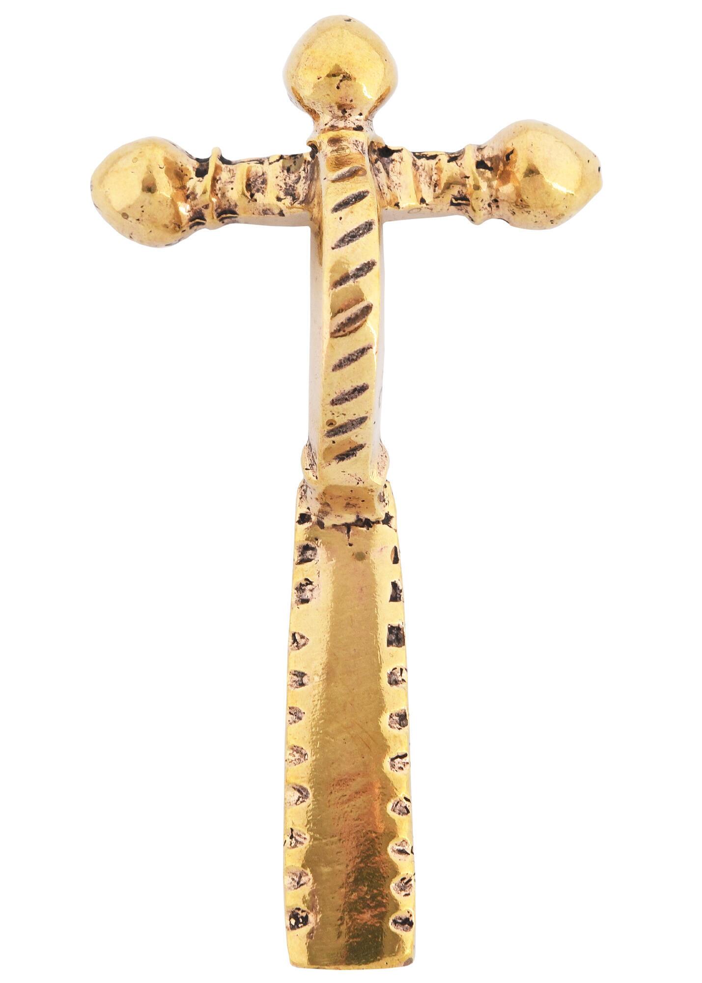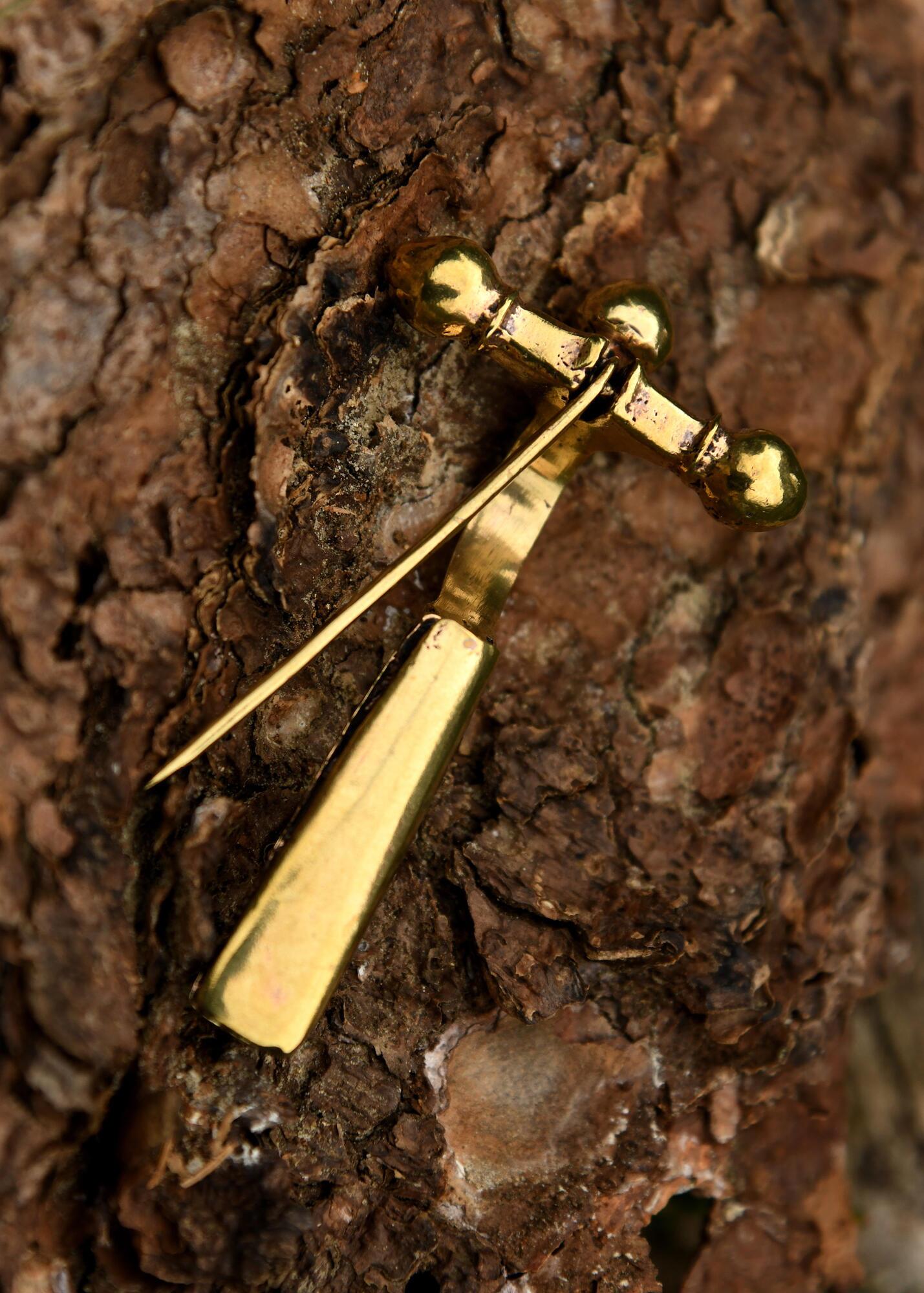 Denne fibula er inspireret af de karakteristiske armbrøstfibulaer fra senantikken. Brochetypen fik sit navn på grund af den tværgående form, der minder om en armbrøst. I Romerriget blev denne type dragtspænde især båret af soldater, men også af højtstående embedsmænd som en del af deres officielle beklædning.