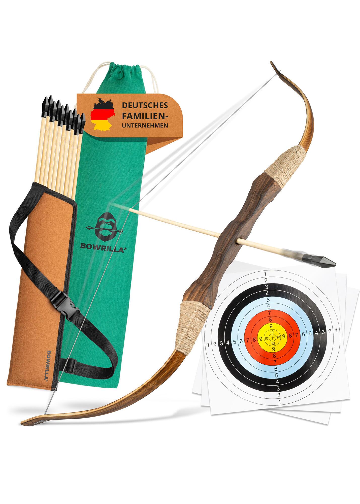 Den robuste træbue måler ca. 100 cm og er udstyret med en integreret sigteguide, som gør det lettere at ramme målet. Det giver børnene en god oplevelse fra start og styrker både koncentration og koordination.