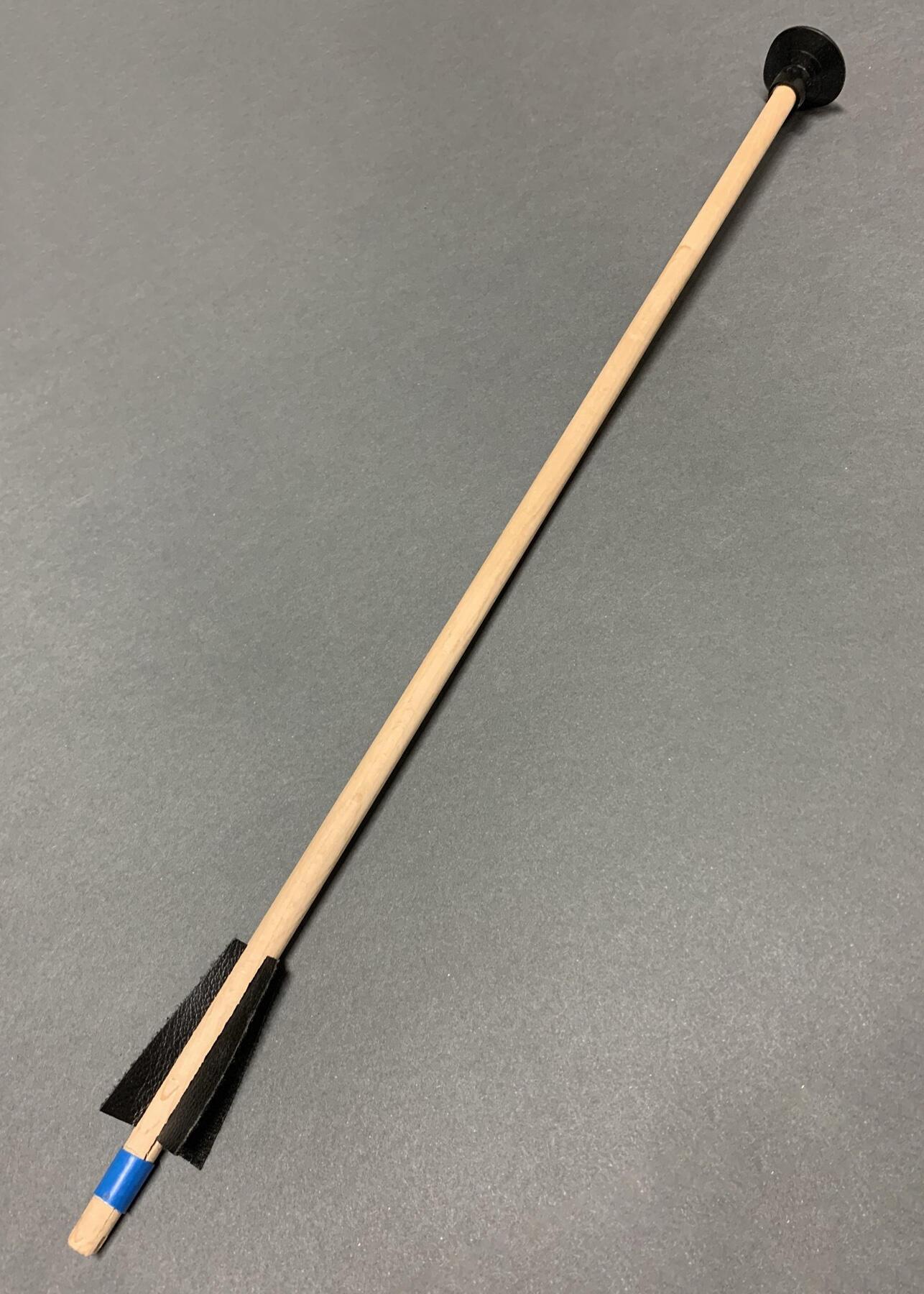 Pilene er fremstillet i træ og udstyret med sugekopper, så de ikke gør skade, og styrehullet i buen hjælper selv de yngste med at ramme målet.