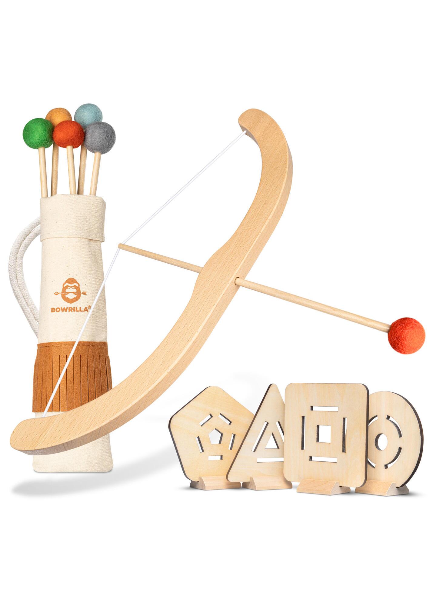 Den solide træbue har en integreret sigteguide, som gør det lettere at ramme målet og giver hurtige succesoplevelser.
