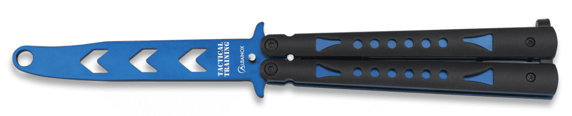 En stilren trænings-balisong i blå finish, udviklet til dig der vil mestre tricks og teknik uden risiko. Den sløve klinge gør den ideel til sikker øvelse, uanset om du er nybegynder eller allerede har erfaring.