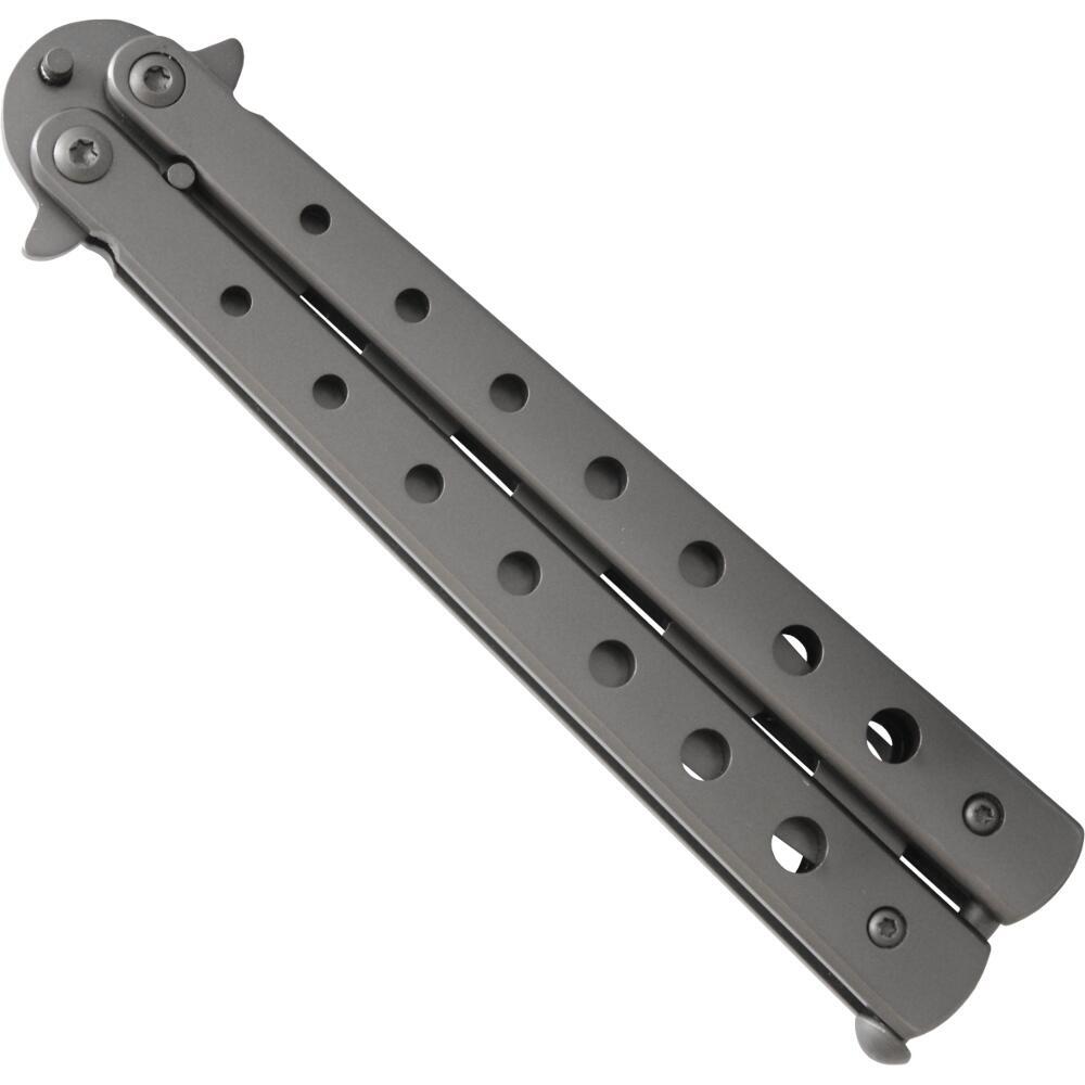 Denne Butterfly Trainer er en robust træningskniv designet til sikker øvelse af flips og teknikker uden skarp klinge.