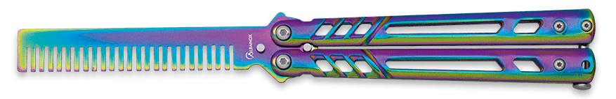 En unik trænings-balisong med kam-formet klinge og titanium-coating, der giver et stilrent og anderledes look. Perfekt til dig, der vil træne tricks på en helt sikker måde uden skarp æg.