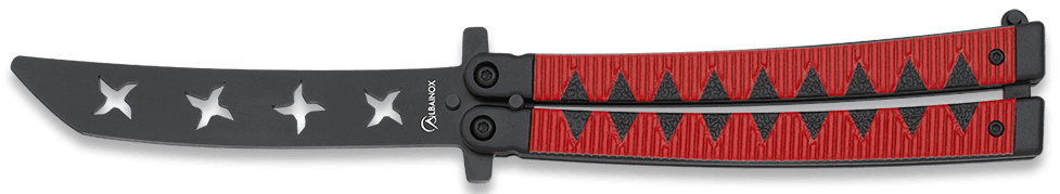 En markant trænings-balisong med et råt “Red Ninja”-udtryk og sort finish. Perfekt til dig, der vil træne tricks og teknik med en model, der både ser skarp ud og føles solid i hånden.