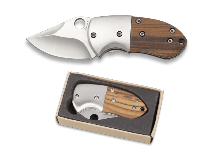 Klingen måler 4,6 cm og er fremstillet i 3Cr13Mov stål med satinfinish, hvilket giver et stilrent udtryk og pålidelig skæreevne til mindre opgaver.