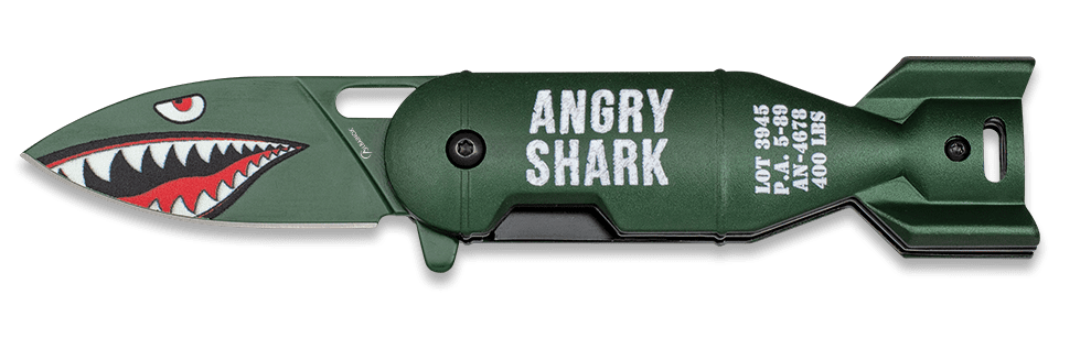 Denne foldekniv kombinerer et kompakt format med et iøjnefaldende angry shark 3D-design, der giver et sjovt og anderledes udtryk. Perfekt til dig, der ønsker en mindre kniv med masser af personlighed.