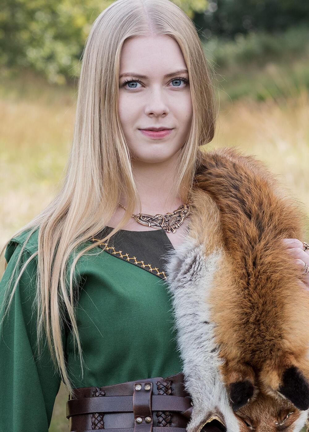 Halskæden kan justeres i længden, så den sidder behageligt. Den egner sig perfekt til middelalderfestivaler, LARP, reenactment eller som et unikt smykke i hverdagen.
