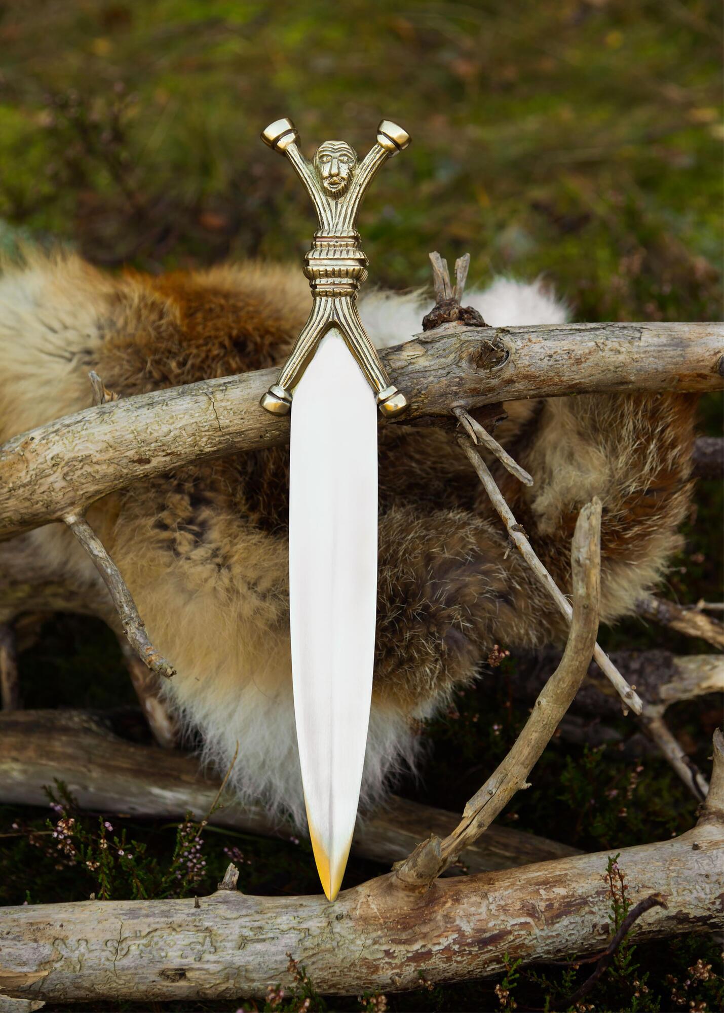 Denne keltiske dolk er inspireret af arkæologiske fund fra forskellige pan-europæiske keltiske stammer, hvor både sværd og dolke havde greb og pommel støbt i antropomorfisk – menneskelignende – form.