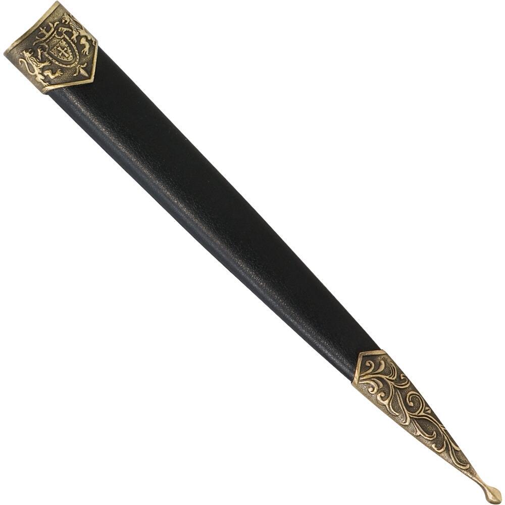 Dekorativ dolk inspireret af legenden om Richard Løvehjerte, den engelske konge og korsridder kendt for sit mod og sine felttog i middelalderen. Designet trækker på klassiske ridderlige former og ornamenter, som giver dolken et historisk og majestætisk udtryk. Den egner sig perfekt som pyntegenstand, samlerobjekt eller gaveidé til dem med interesse for middelalderhistorie og riddertemaer.