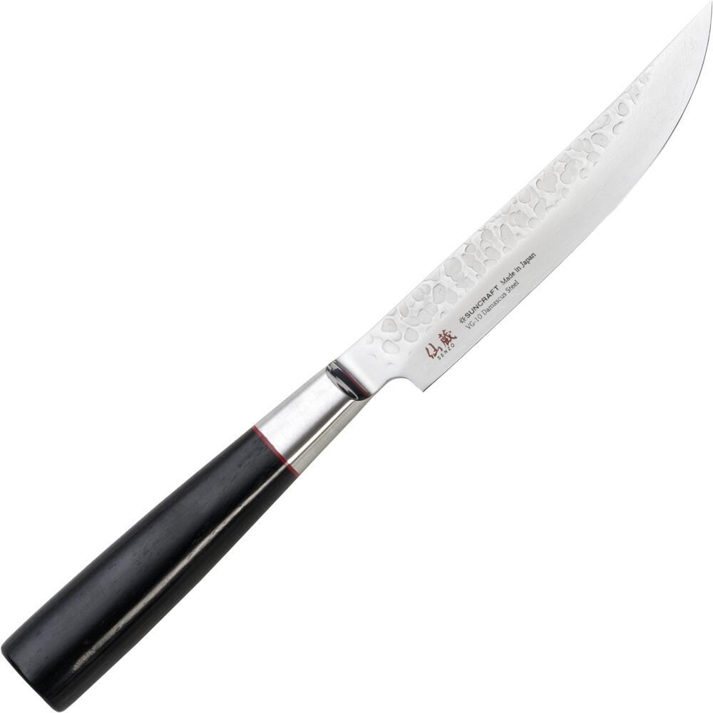 Senzo Steak Hocho er en japansk steakkniv i eksklusiv kvalitet, skabt til præcise og elegante snit i kød. Den slanke og ekstremt skarpe klinge gør det let at skære igennem steaks og andre udskæringer uden at flosse fibrene, hvilket giver en flot præsentation på tallerkenen.