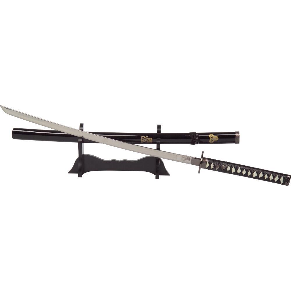Katanaen leveres med træstander, hvilket gør den ideel til udstilling på hylde, bord eller i vitrineskab. Klingen er fremstillet i 420 rustfrit stål, mens håndtag og skede kombinerer træ og syntetiske materialer for et let og holdbart design.