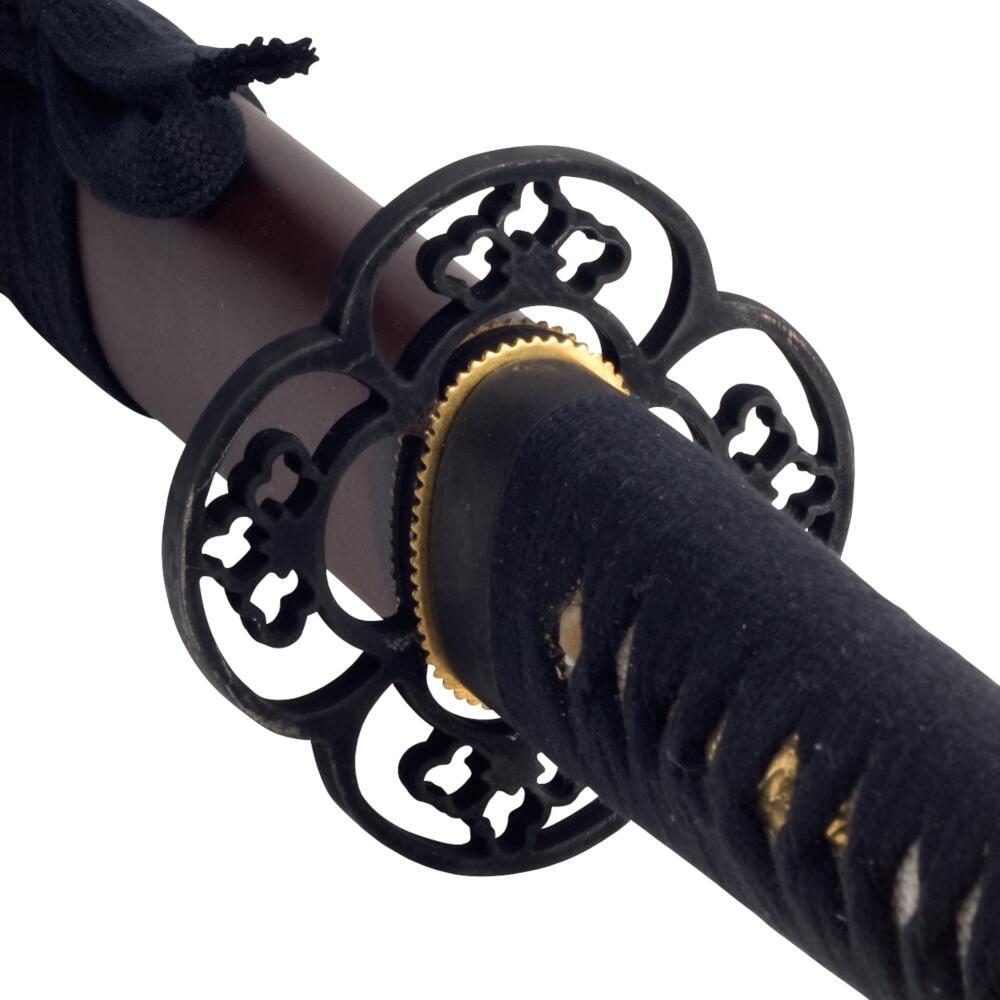 Sværdet har en lang tang, der er fastgjort med to bambuspinde (Mekugi), hvilket gør det fuldt adskilleligt. Der er ikke anvendt plastik – kun kvalitetsmaterialer for maksimal autenticitet. Habaki (klingekrave) og Seppa (skiver) er fremstillet i messing, og alle beslag såsom Tsuba, Fuchi, Menuki og Kashira er udført i metal. Leveres med beskyttende stofpose og en flot samleræske.