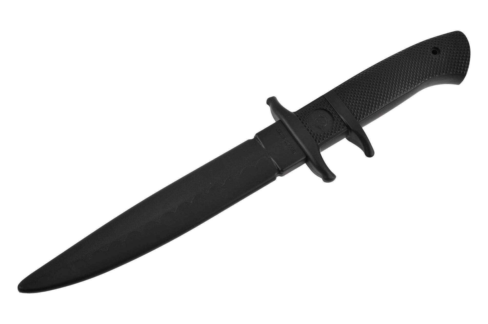 Kniven er fremstillet i slidstærkt polypropylen, et stærkt plastmateriale der ikke er sprødt og derfor tåler hård brug. Materialets fasthed og realistiske vægt gør det muligt at simulere kamp- og forsvarssituationer mere troværdigt uden risikoen ved en skarp klinge.