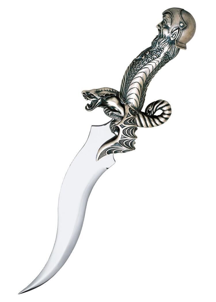 Denne dekorative dolk er en hyldest til den mytiske kriger-druid og kombinerer et fantasifuldt design med klassiske elementer. Klingen er fremstillet i rustfrit stål og har et markant og ceremonielt udtryk, der gør den velegnet til udstilling.