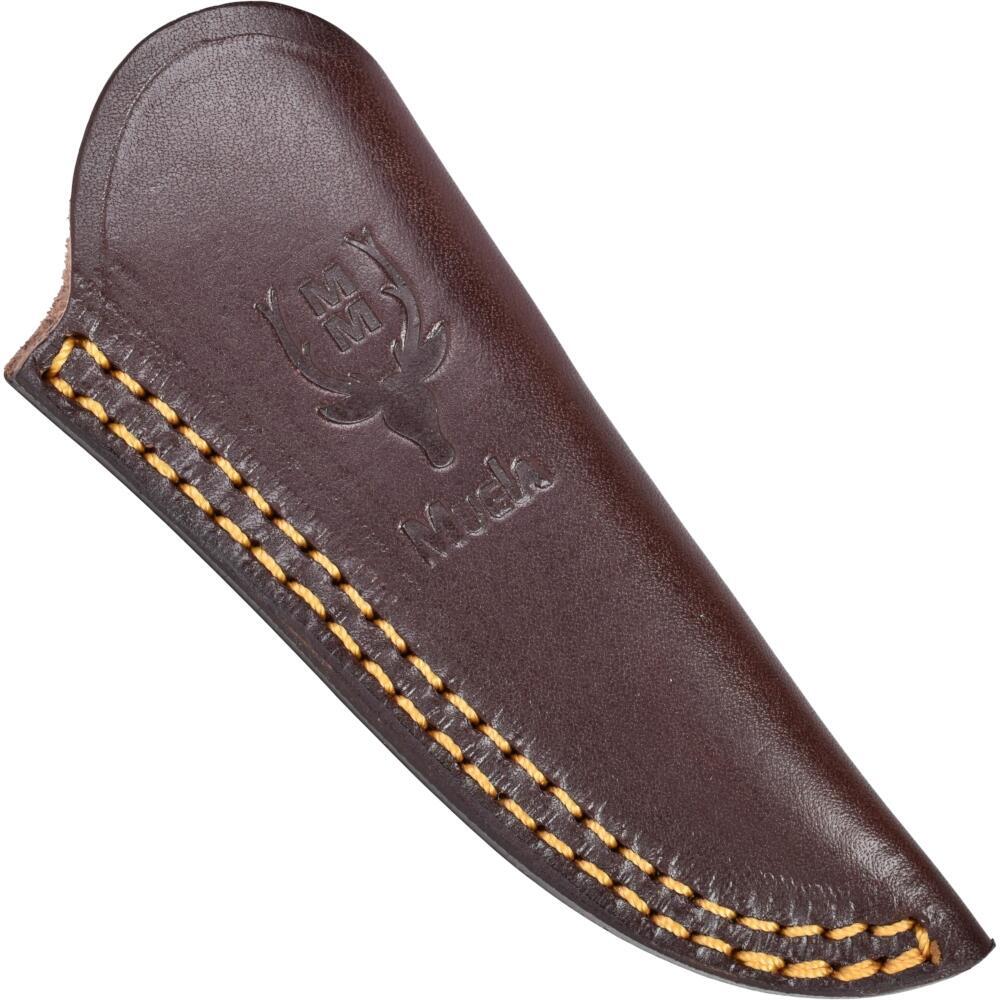 Håndtaget i Micarta er både slidstærkt og vejrbestandigt og giver et sikkert greb – selv i fugtige eller kolde forhold. Kniven leveres med en kvalitets læderskede, som sikrer tryg opbevaring og gør den nem at bære i bæltet.