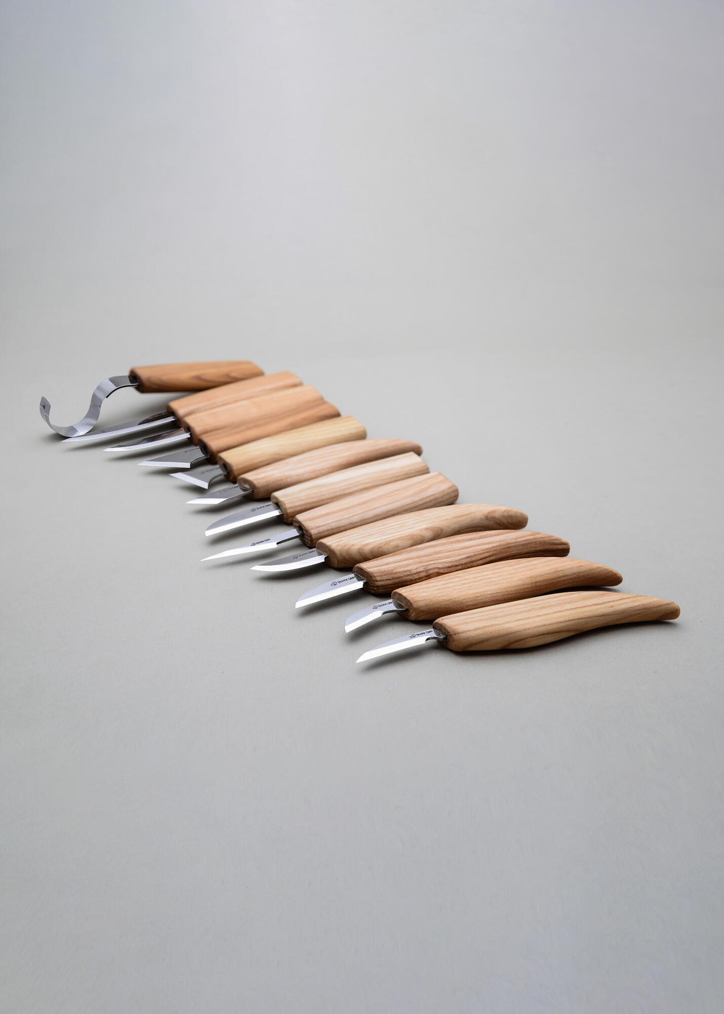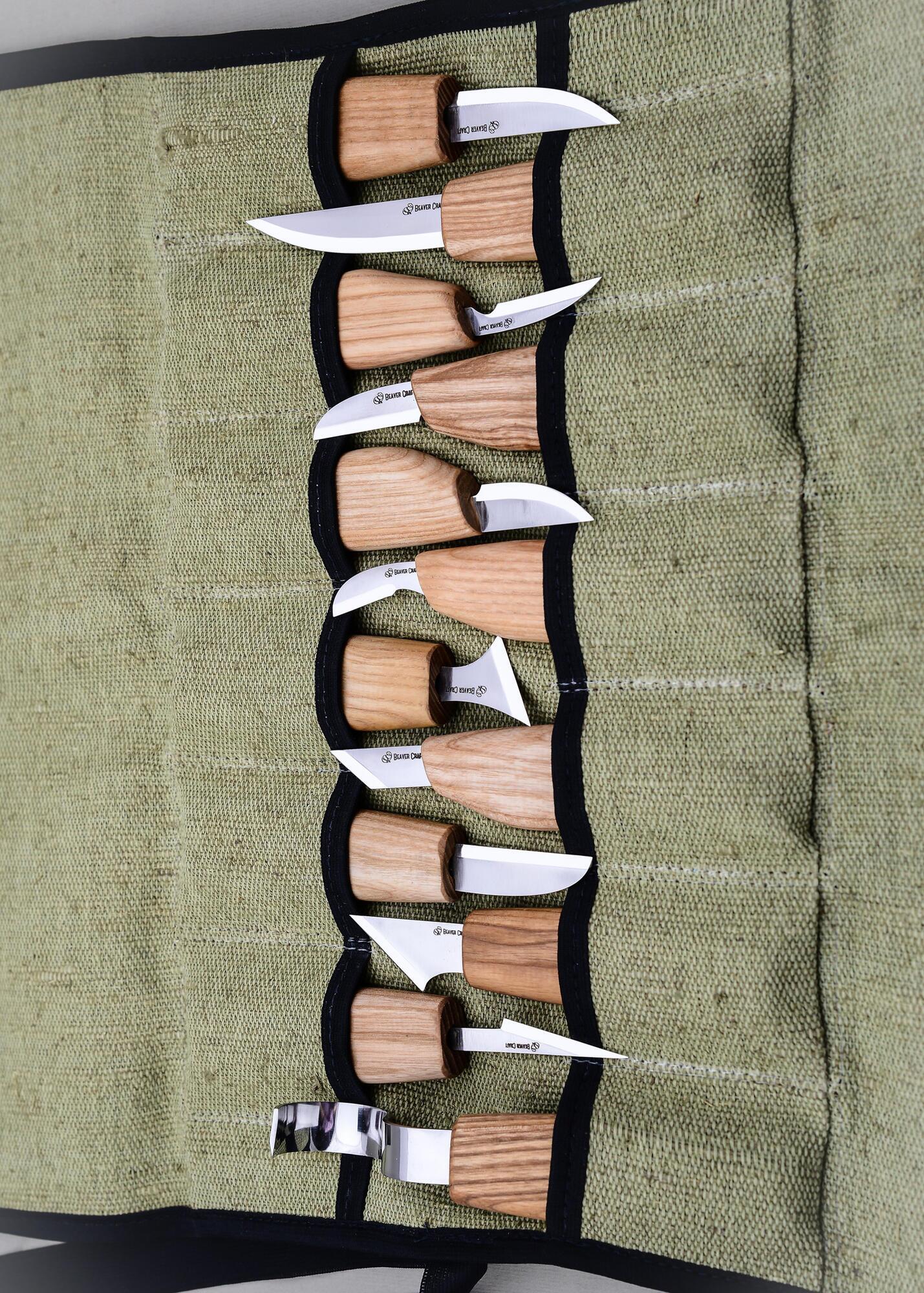 Træskærersæt med 12 knive i værktøjsrulle – BeaverCraft