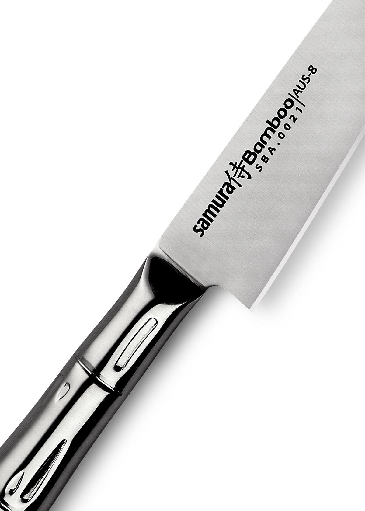 En elegant og moderne køkkenkniv i helstål fra Samura. Den minimalistiske Bamboo-serie kombinerer stilrent design med praktisk funktionalitet og høj hygiejne.