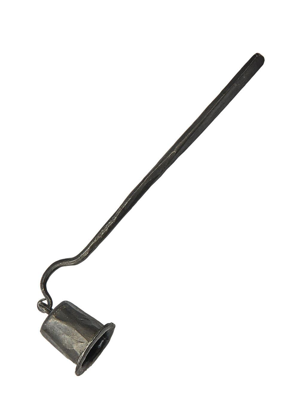 Denne praktiske lyseslukker er håndsmedet i smedejern og gør det nemt at slukke stearinlys sikkert uden at sprøjte varm voks. Den enkle og rustikke udformning giver et autentisk udtryk, som passer perfekt til historiske miljøer.