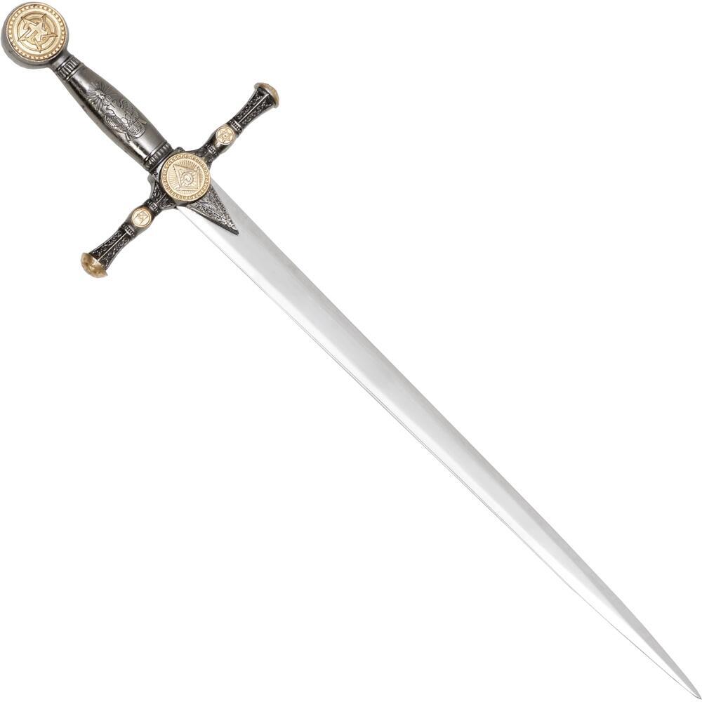Dekorativt miniaturesværd med detaljeret design inspireret af frimurer-symbolik. Velegnet som pyntegenstand, samlerobjekt eller gaveidé. Fremstillet med blad i 420 rustfrit stål og håndtag i solidt støbt metal, som giver et eksklusivt og autentisk udtryk.