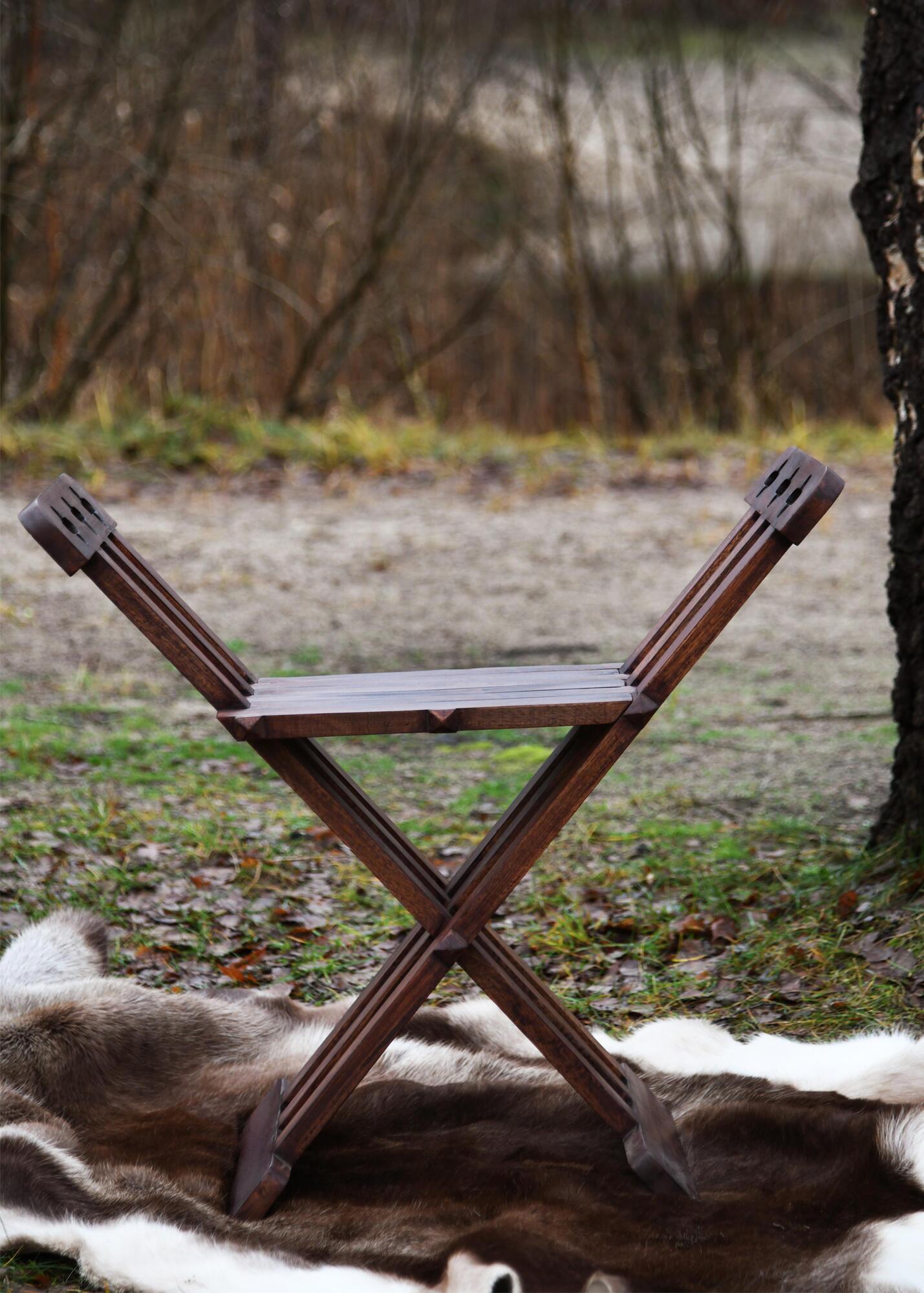Stolen er velegnet til middelaldermarkeder, reenactment og historiske arrangementer, men fungerer også fint som campingstol, havestol eller som et dekorativt møbel i hjemmet.