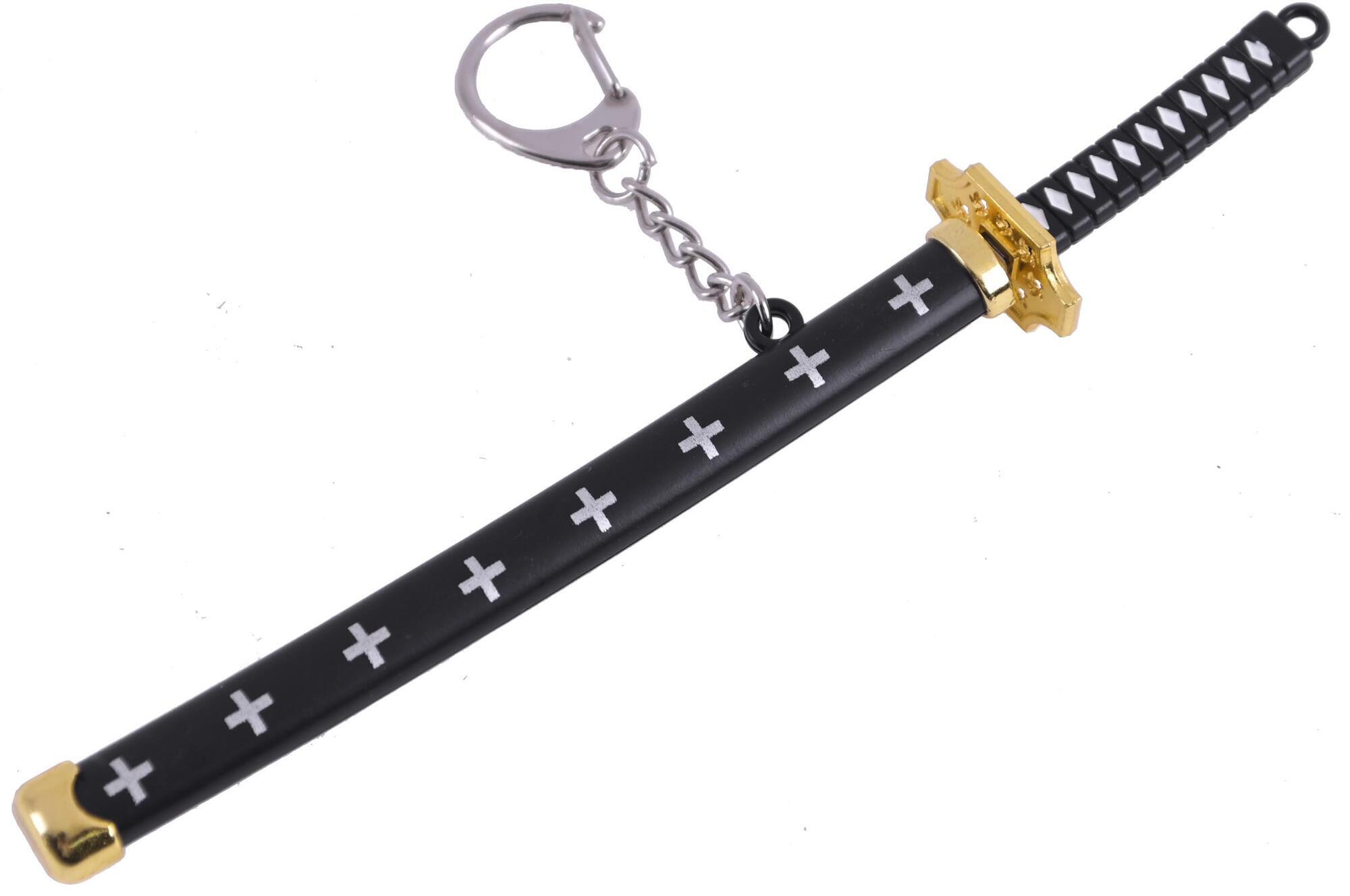 Dekorativ mini katana inspireret af anime-universet One Piece. Den lille katana leveres med skede og kæde, så den kan bruges både som brevåbner, nøglering eller dekorativ gadget på taske eller nøglebundt.