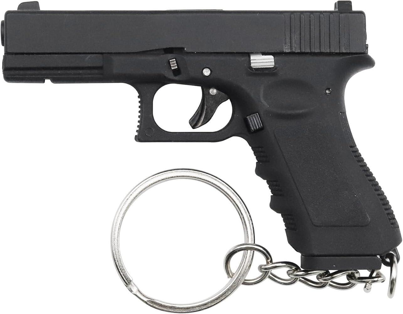 Nøgleringen har en bevægelig mekanisme, hvor man kan trække slæden tilbage og trykke på aftrækkeren, så der kommer et lille klik – helt uden ammunition.