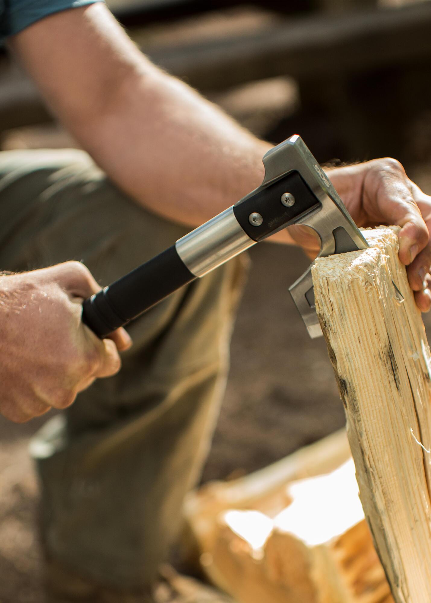 Den lave vægt og kompakte størrelse gør øksen nem at have med i rygsækken. Ideel til: