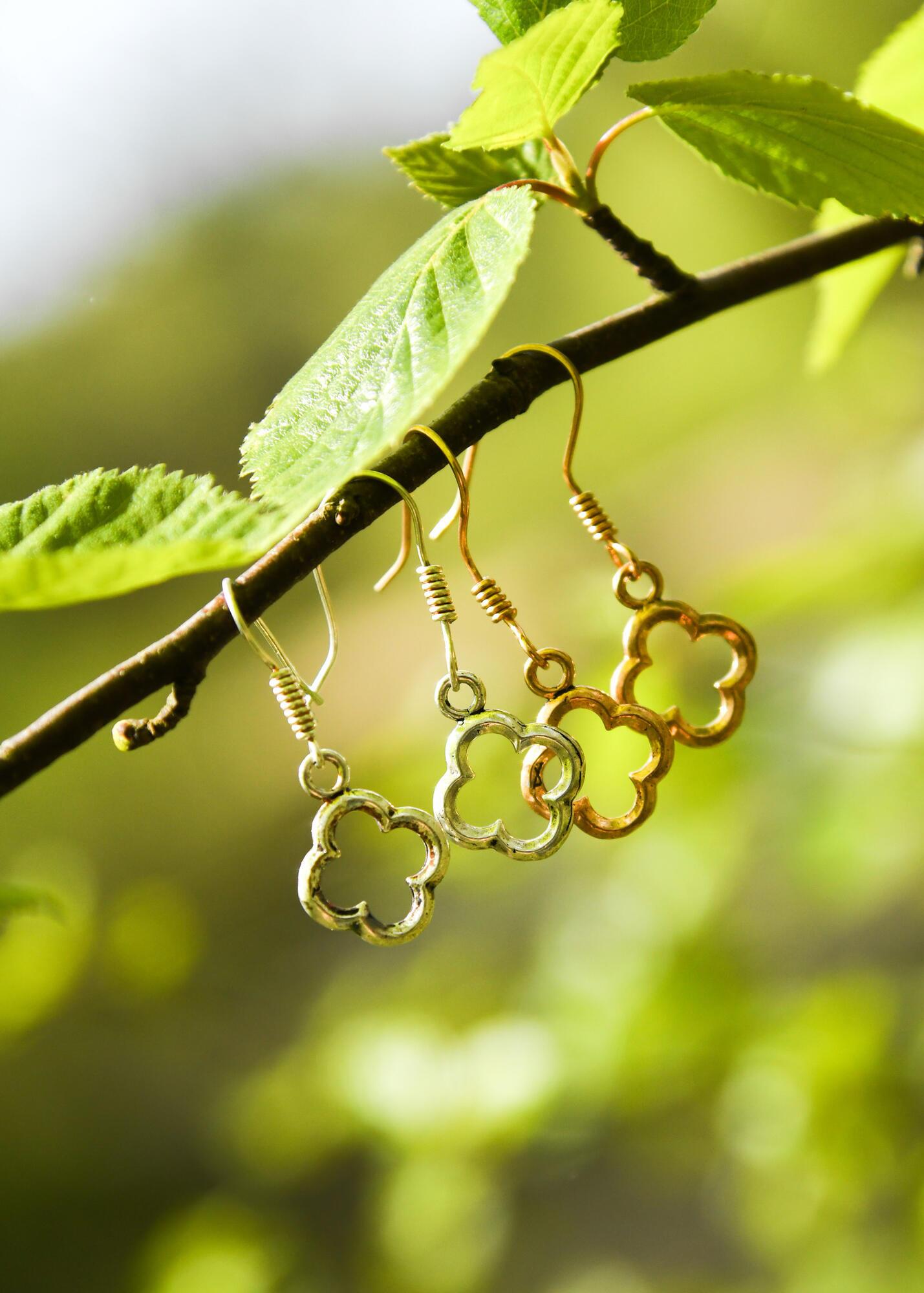 Øreringene fås i enten bronze eller sølvbelagt udgave.