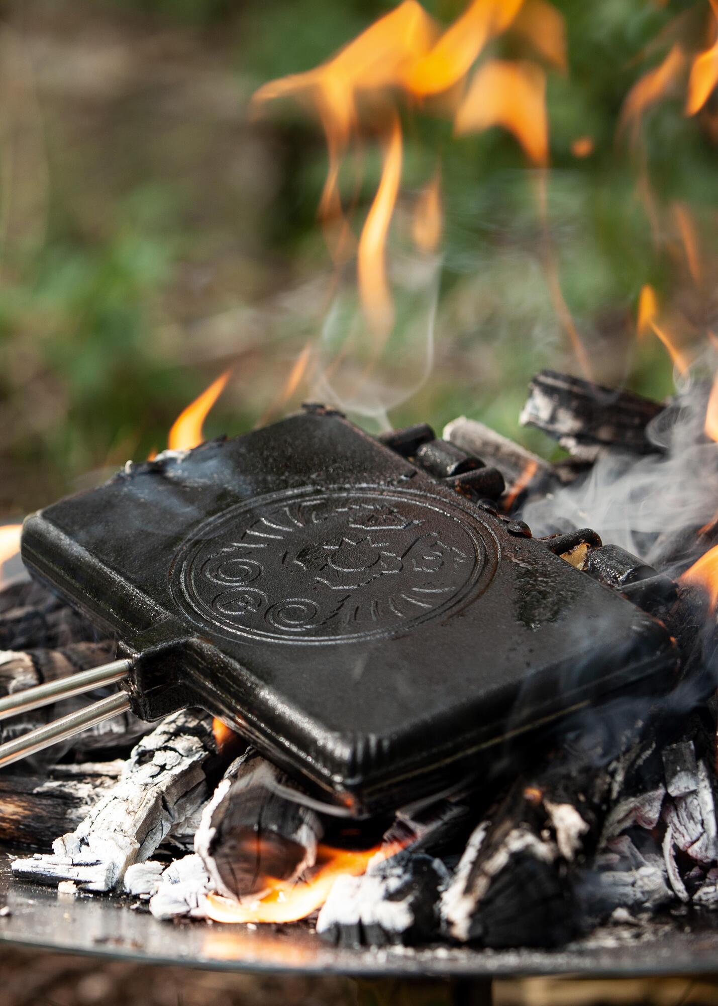 Med dette vaffeljern fra Petromax kan du nemt bage sprøde vafler over bål eller grill. Det er en perfekt dessert til lejrbålet, campingturen eller havefesten – hæld blot dejen i jernet, vend det over varmen og nyd friskbagte vafler.