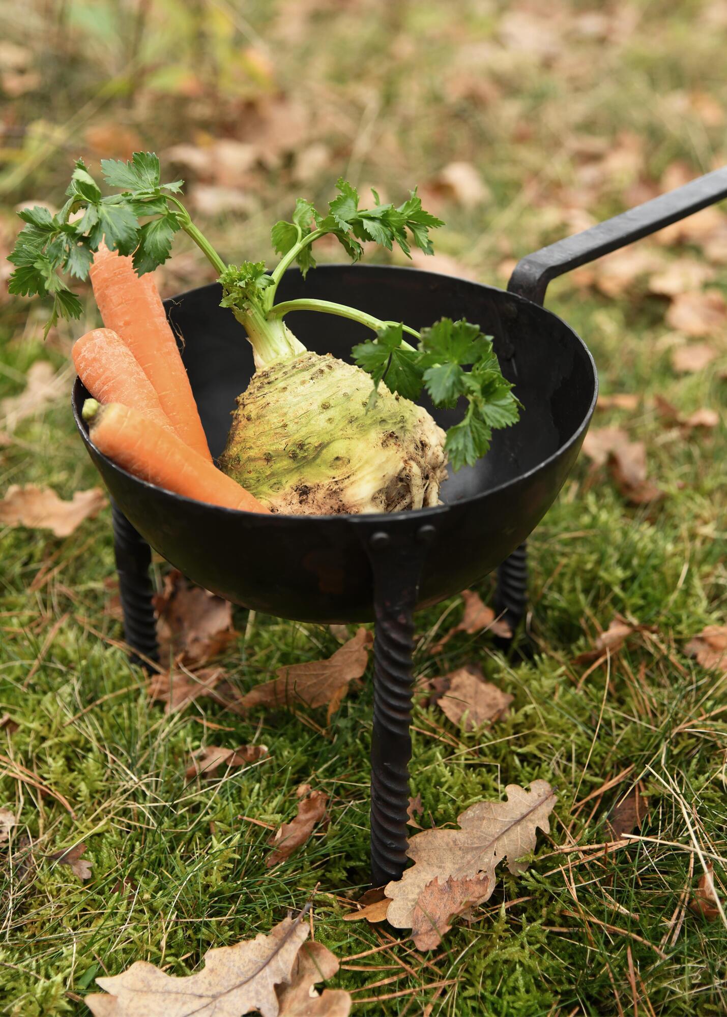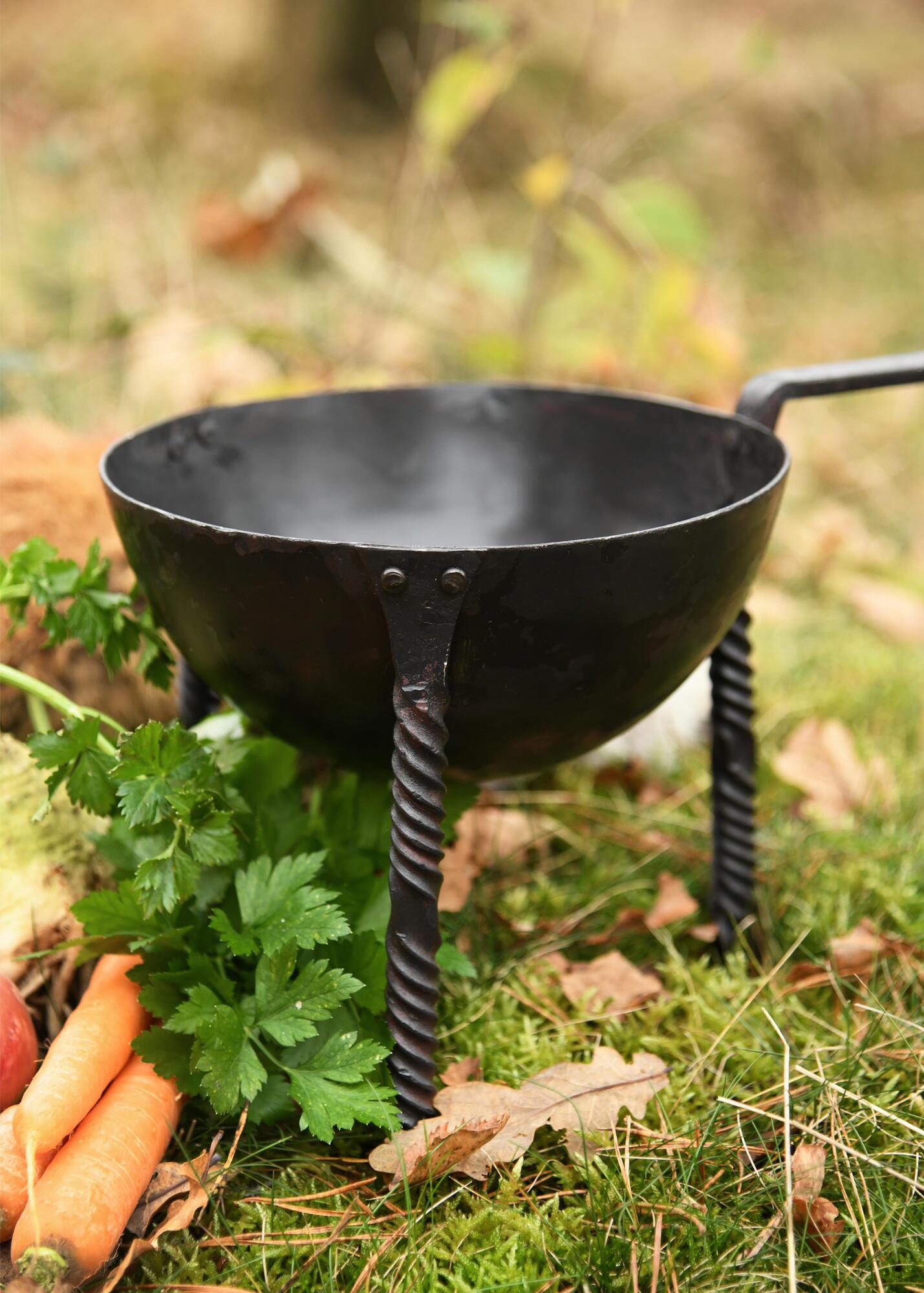 Trefodspande / middelaldergryde – håndsmedet stål