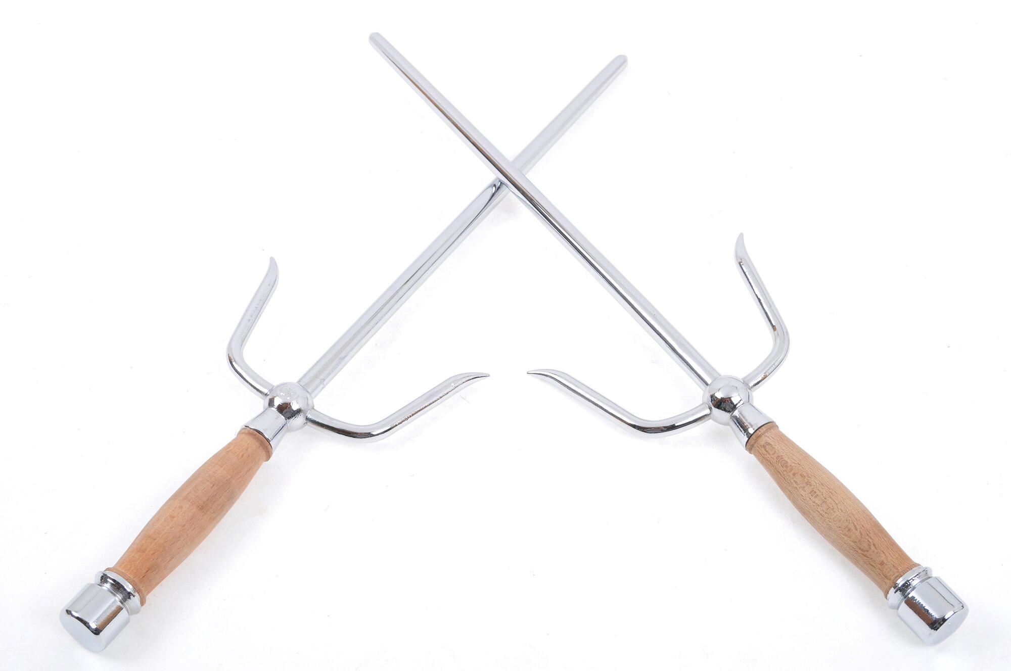 Sai har den karakteristiske tre-takkede konstruktion med en central spids og to sidearme. Designet gør det muligt både at aflede bevægelser og arbejde med præcise teknikker ved hjælp af de tre spidser.