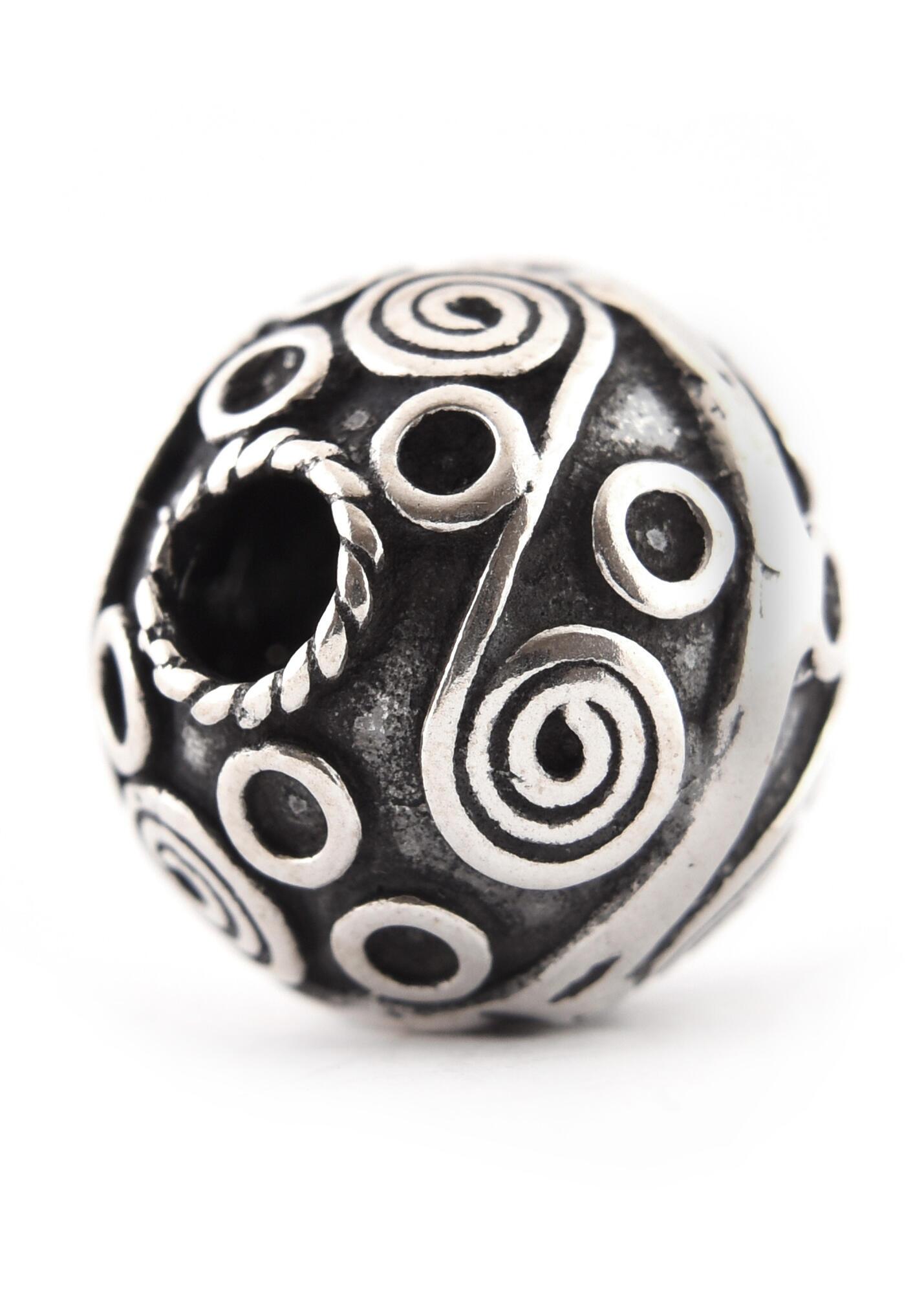 Denne flotte smykkeperle er fremstillet af ægte 925 sterlingsølv og dekoreret med et smukt keltisk mønster bestående af cirkler og spiraler. Det detaljerede design giver perlen et autentisk historisk udtryk inspireret af keltisk kunst og smykketradition.