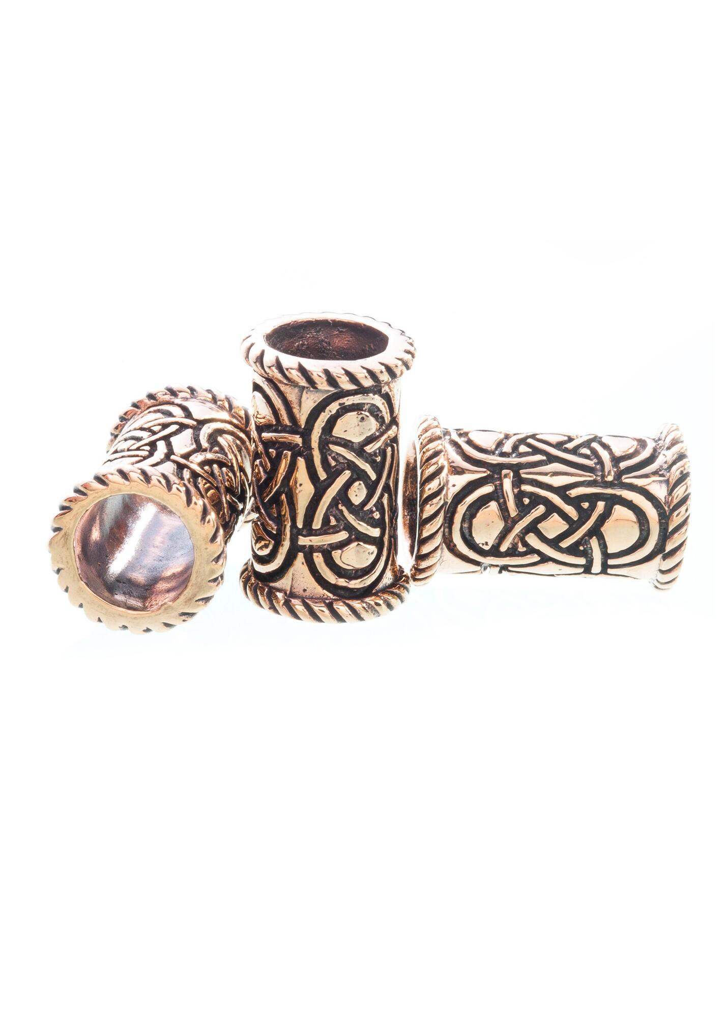 Denne dekorative skæg- og hårperle er fremstillet i bronze og udsmykket med et klassisk keltisk uendeligt knudemønster. Det sammenflettede design symboliserer evighed og sammenhæng og giver perlen et autentisk historisk udtryk.