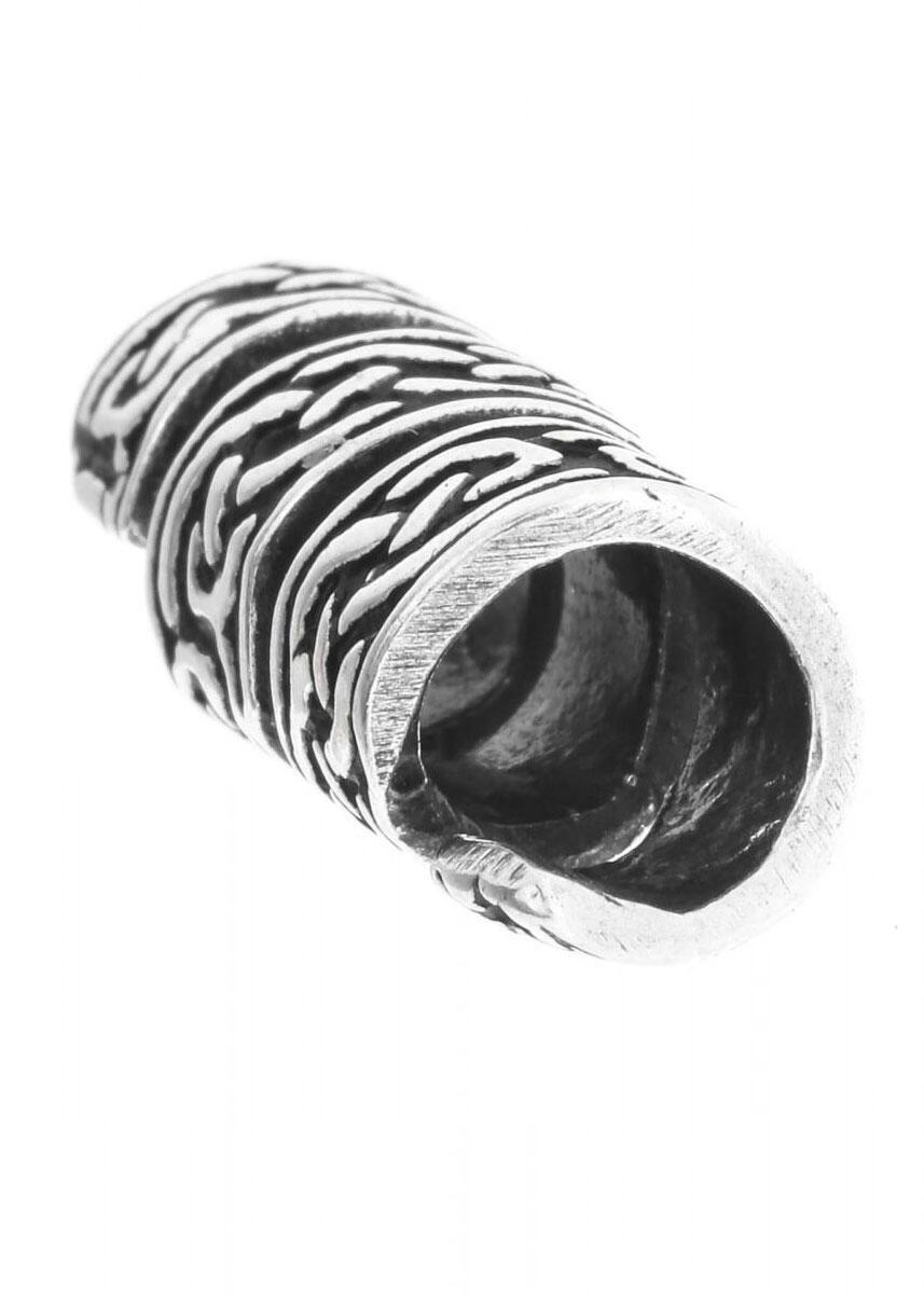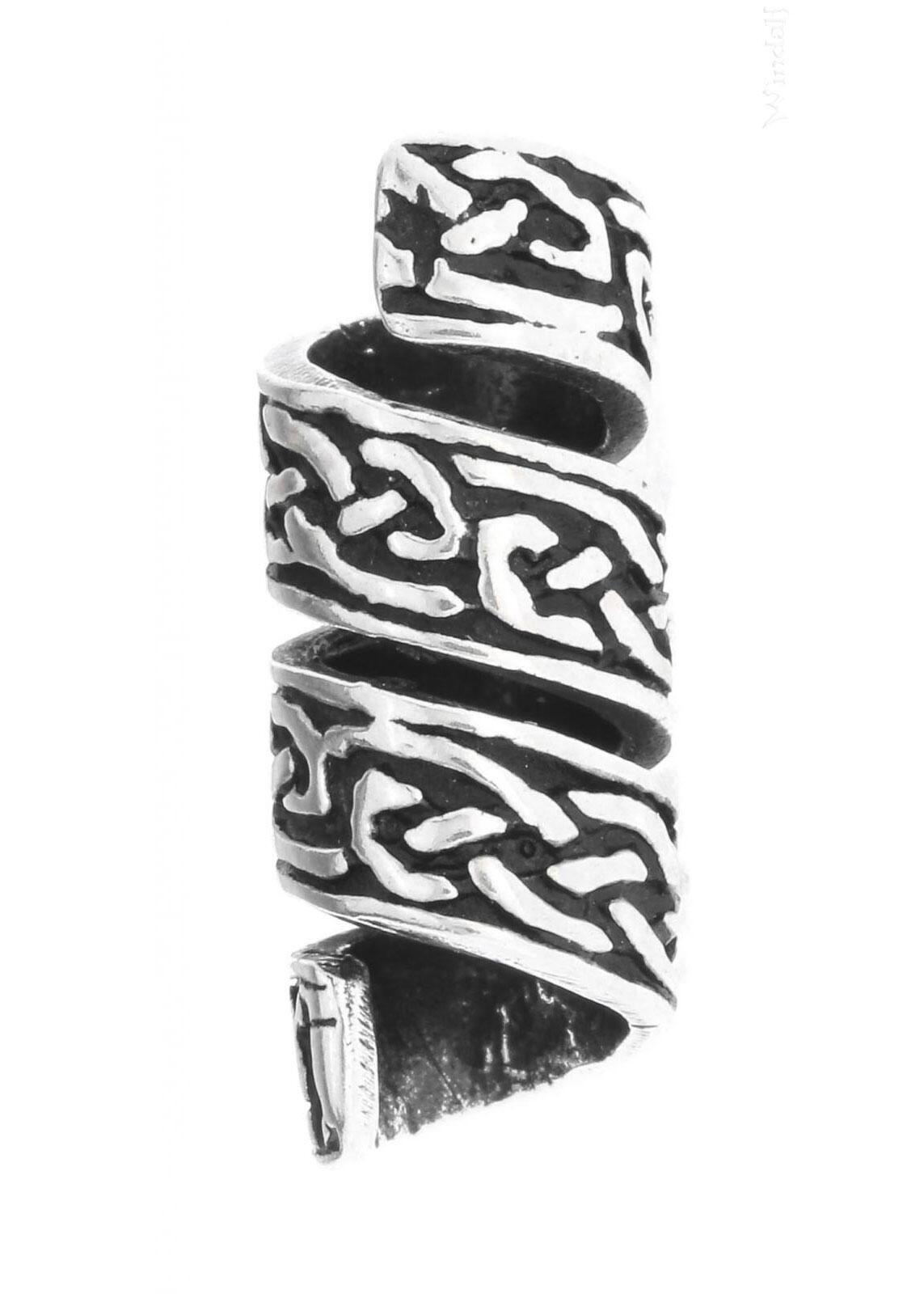 Denne elegante skæg- og hårperle er fremstillet af ægte 925 sterlingsølv og dekoreret med et smukt keltisk knudemønster. De sammenflettede linjer er inspireret af klassisk keltisk kunst og symboliserer ofte evighed og sammenhæng.