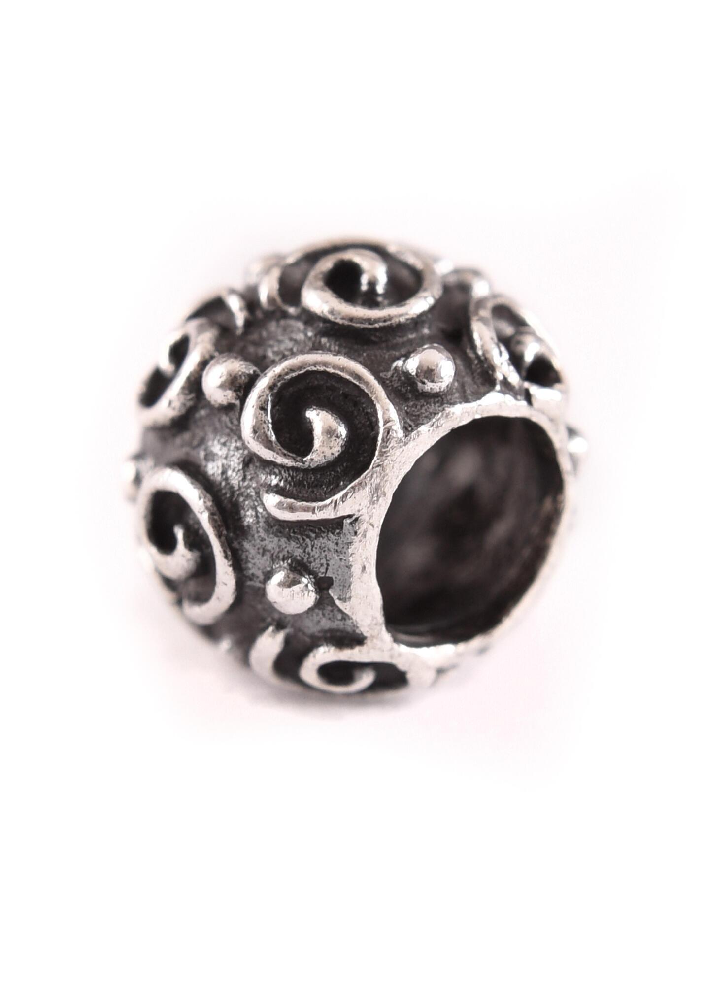 Denne lille og elegant udformede perle er fremstillet af ægte 925 sterlingsølv og dekoreret med et klassisk spiralmønster. Spiraldesignet har rødder i både keltisk og nordisk smykkekunst og giver perlen et flot historisk udtryk.