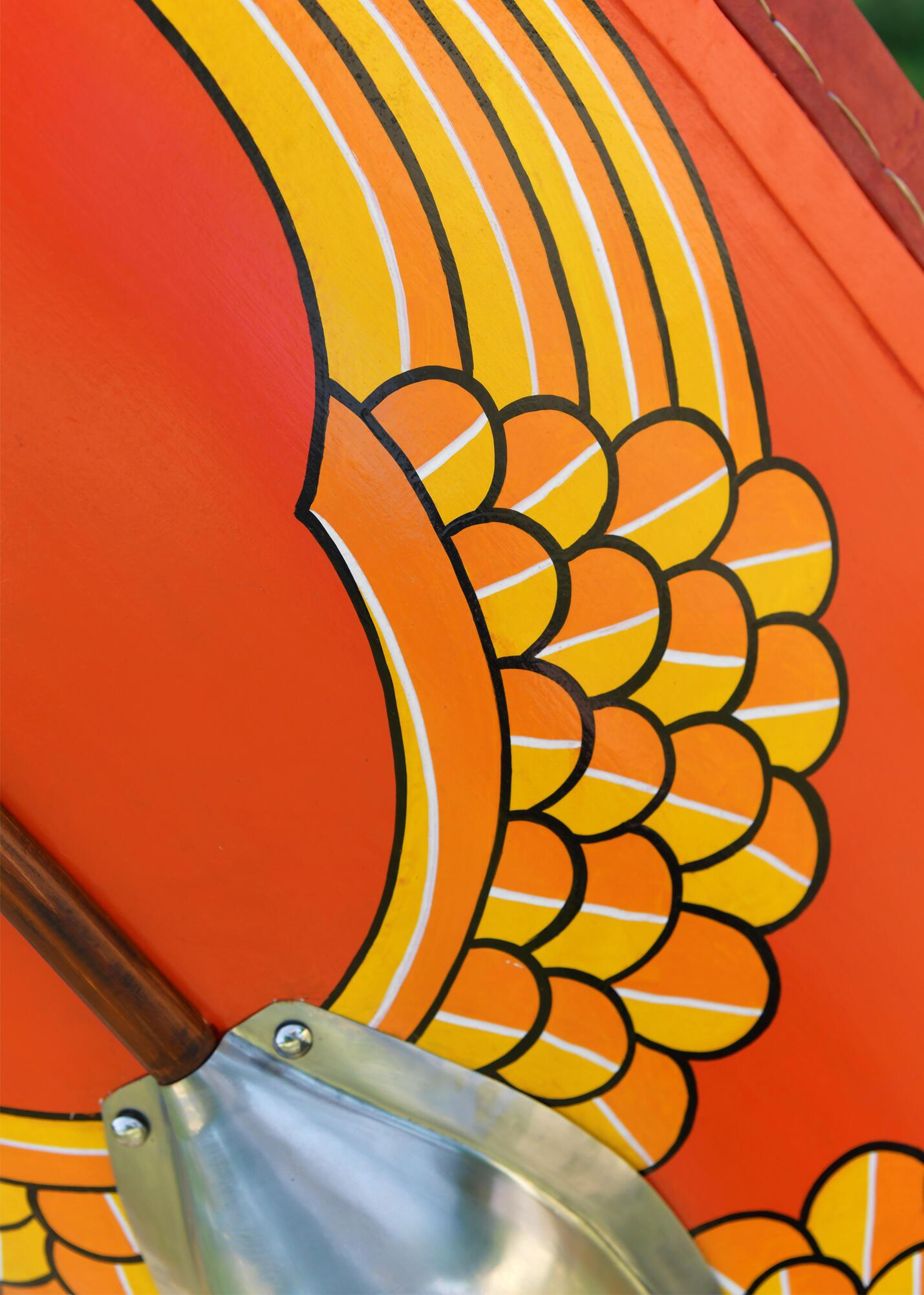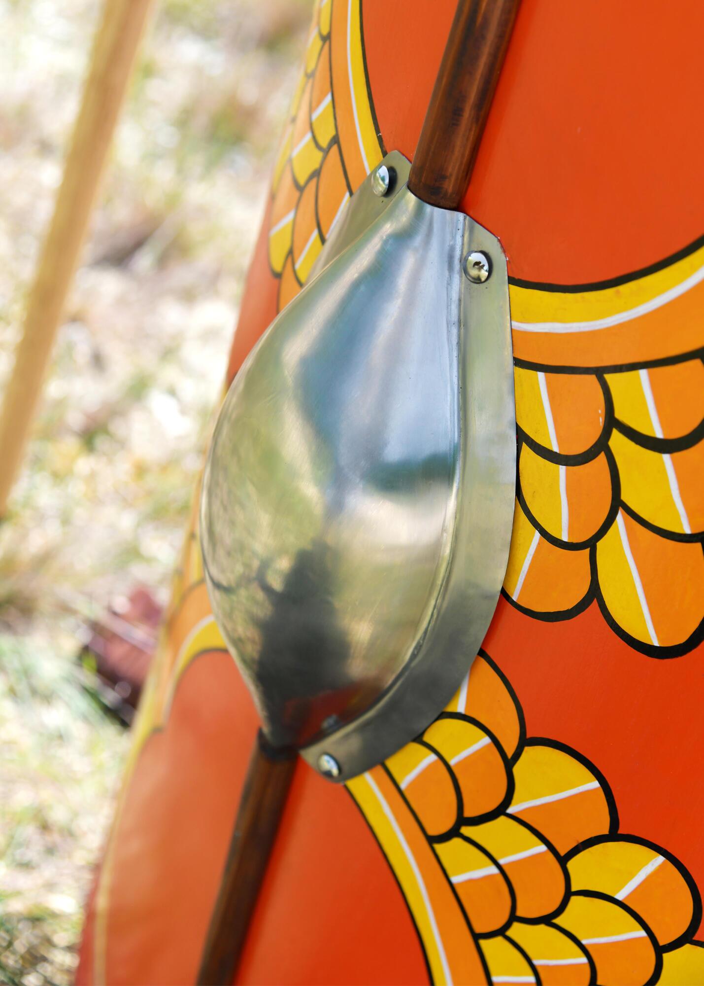 Et særdeles kraftigt og markant skjold, velegnet til reenactment, historisk formidling eller som en central del af en republikansk romersk oppakning.