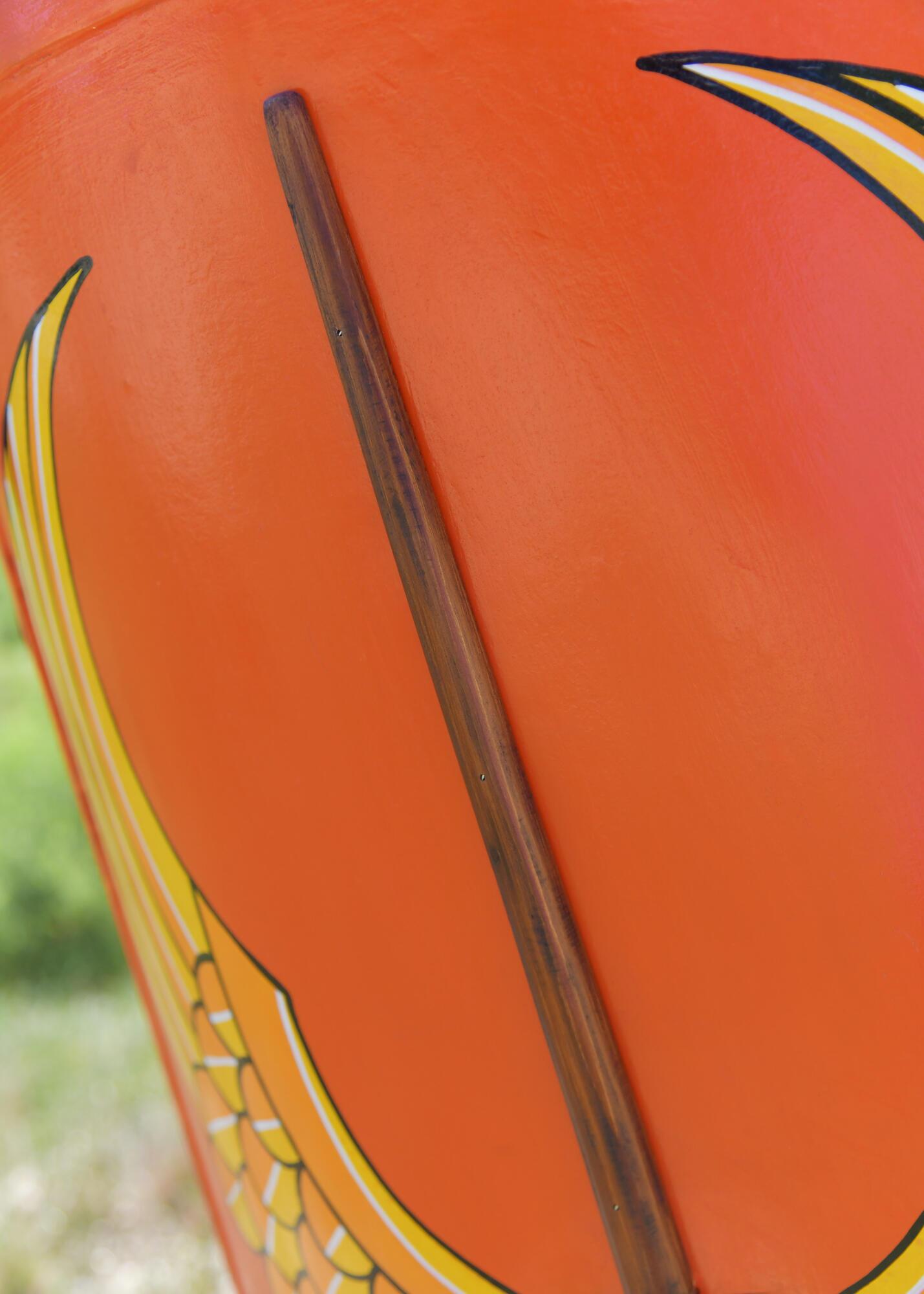 Skjoldet leveres i to dele, hvor skjoldbulen (umbo) nemt monteres med de medfølgende skruer. Konstruktionen giver et massivt og imponerende udtryk, som ligger tæt på de historiske forbilleder både i størrelse og proportioner.