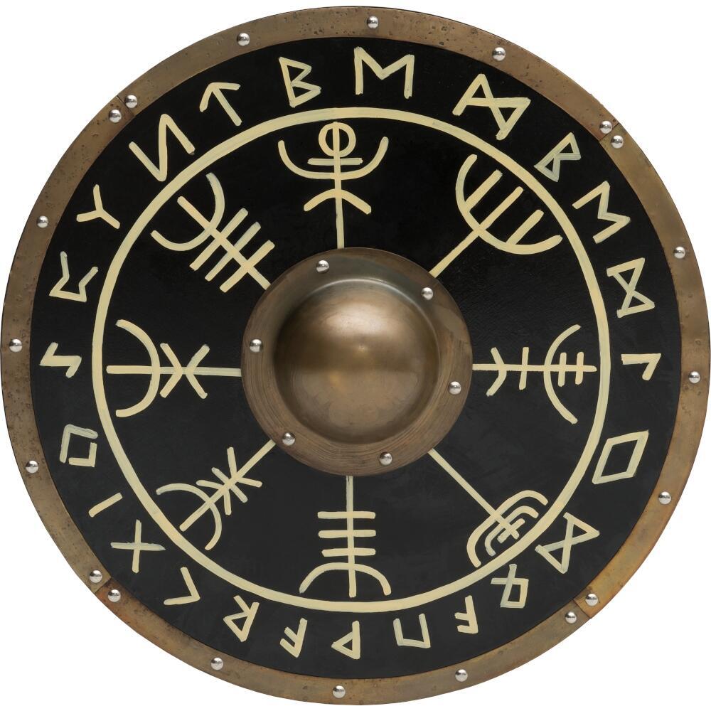 Rundt Vikingeskjold – Træskjold med runer og metalbeslag