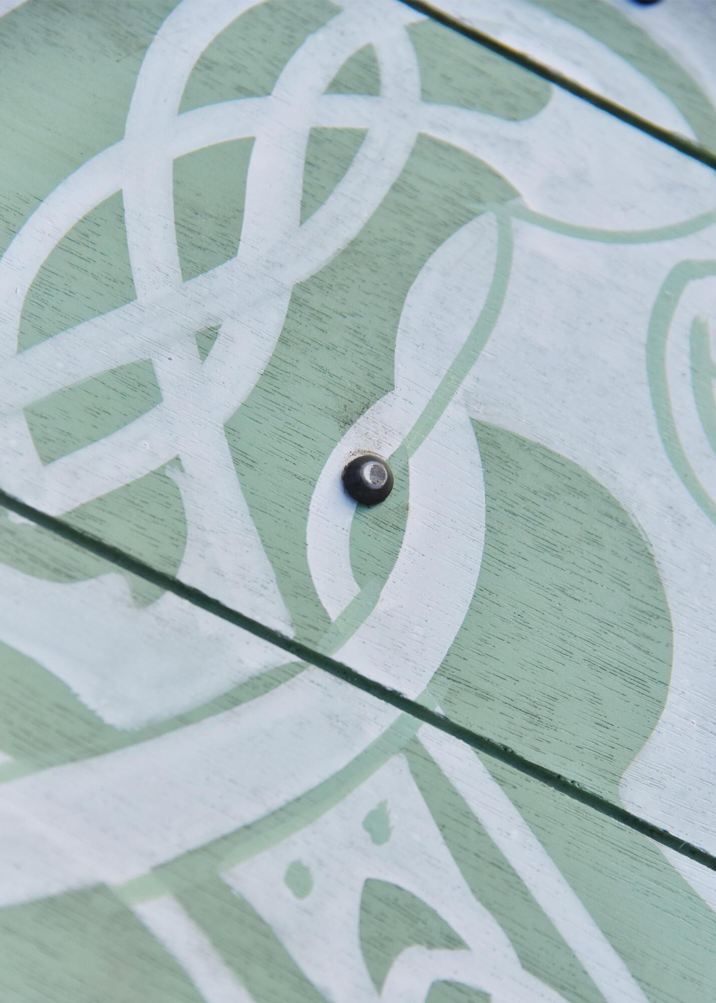 Dekoration: Malet motiv af Fenrir og runer fra ældre Futhark
