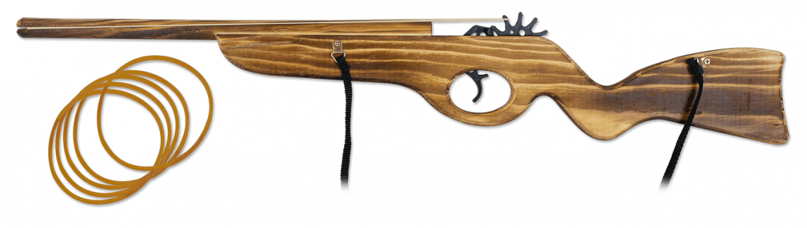 Dette trægevær er et traditionelt legetøj, der kombinerer enkelt design med funktionel leg. Den længere længde giver et mere realistisk udtryk og gør det velegnet til aktiv leg.