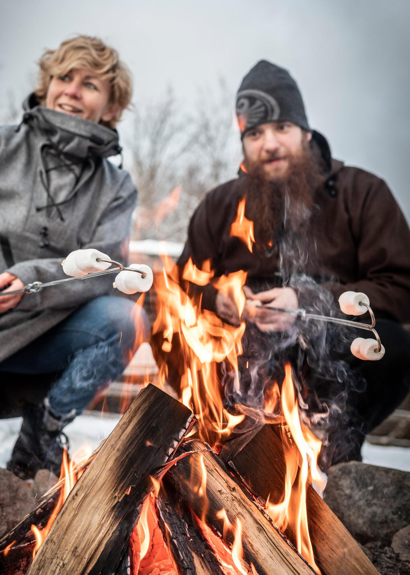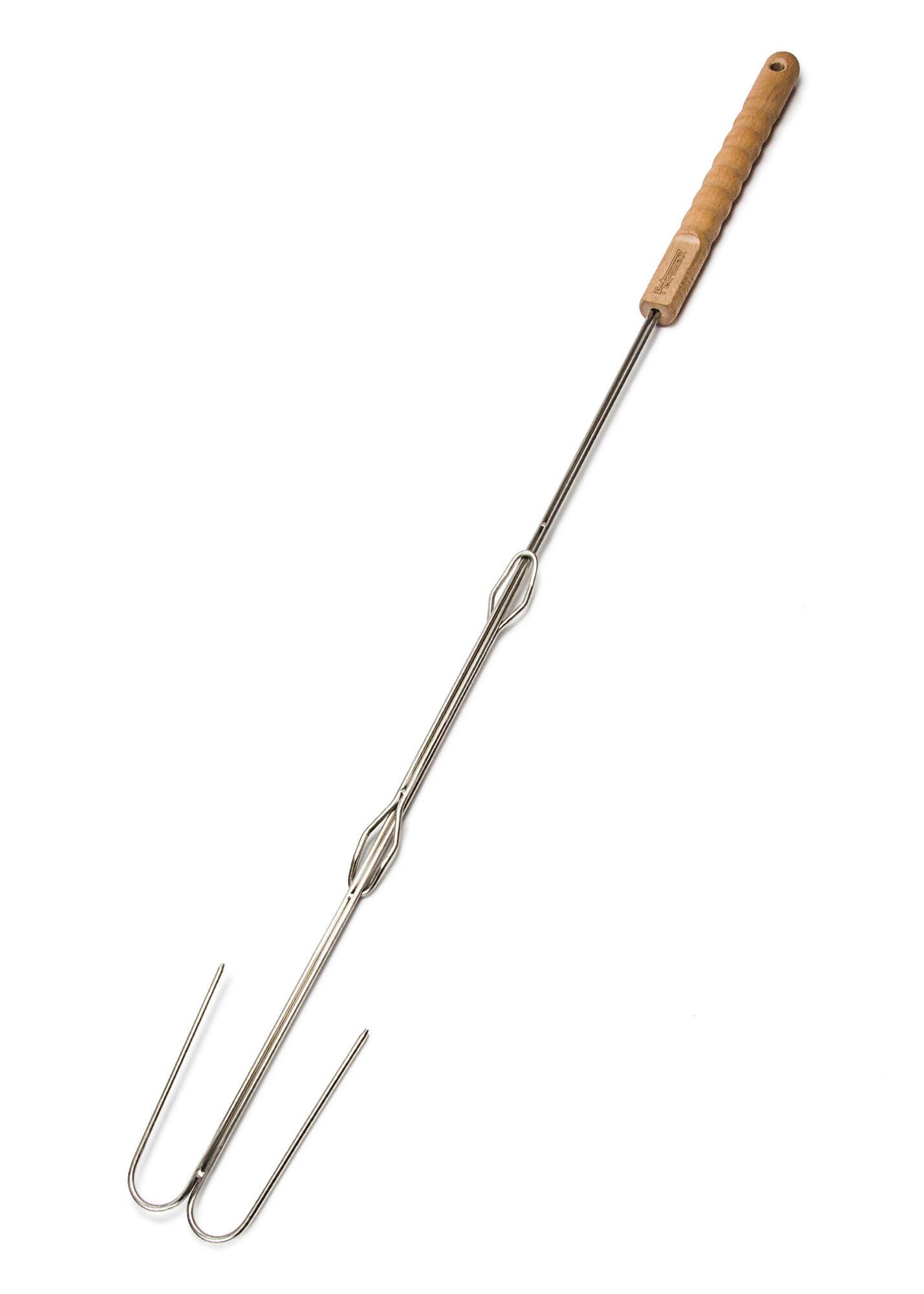 Spyddets længde kan justeres, så du altid kan holde passende afstand til varmen fra bålet. Håndtaget er fremstillet af bøgetræ og har en rillet overflade, der giver et sikkert og behageligt greb.