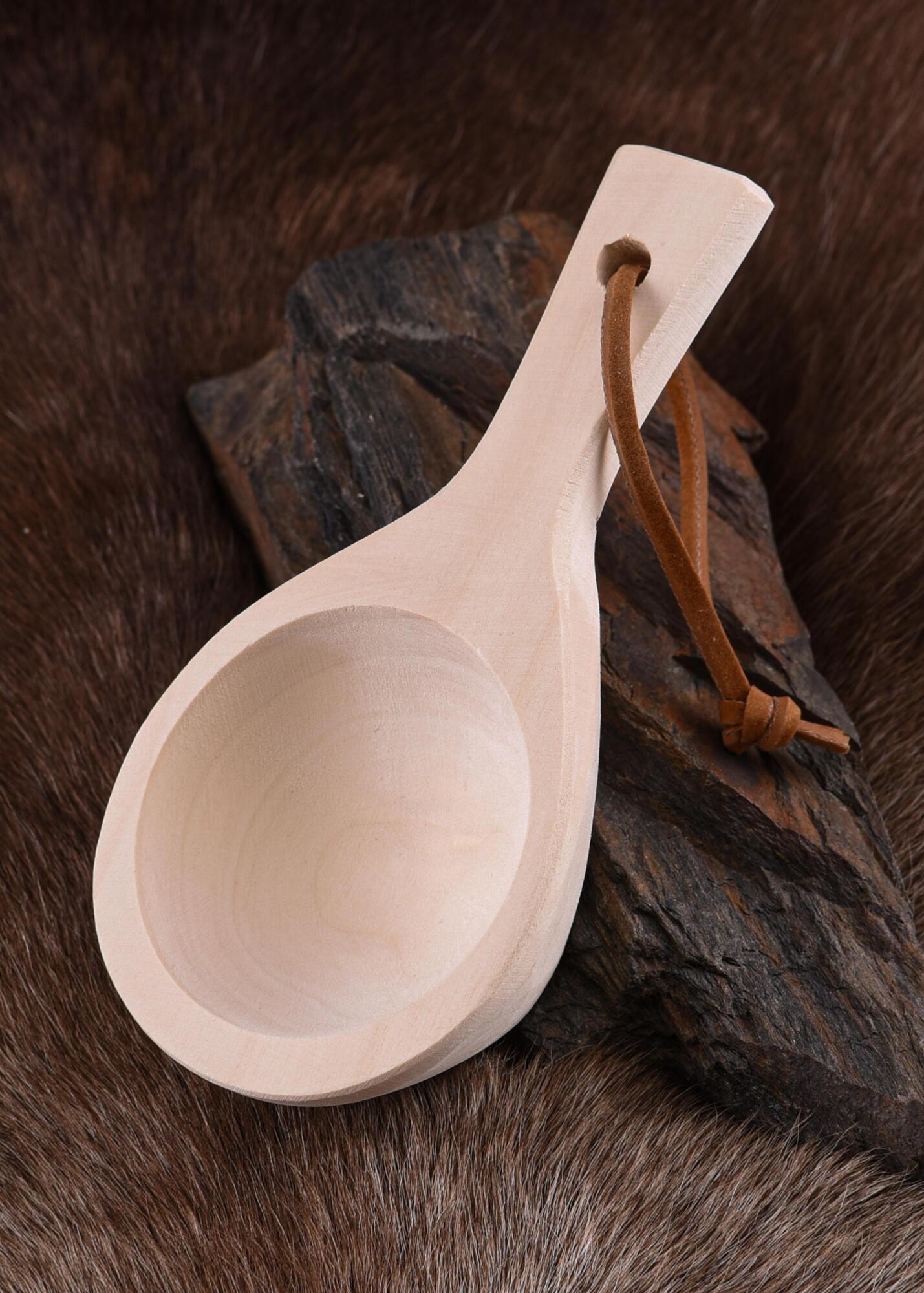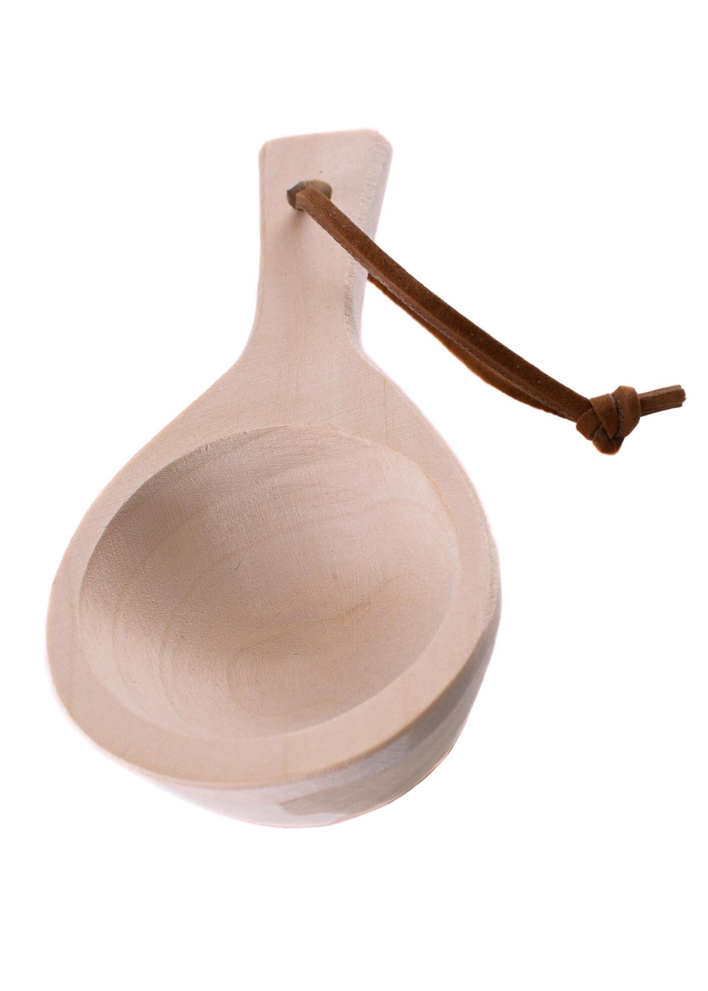 Denne korte øseske er fremstillet af aspetræ og har en praktisk lædersnor, så den nemt kan hænges op i køkkenet, i lejren eller fastgøres til bæltet. Den kompakte størrelse gør den velegnet til servering af suppe, sauce eller drikke.
