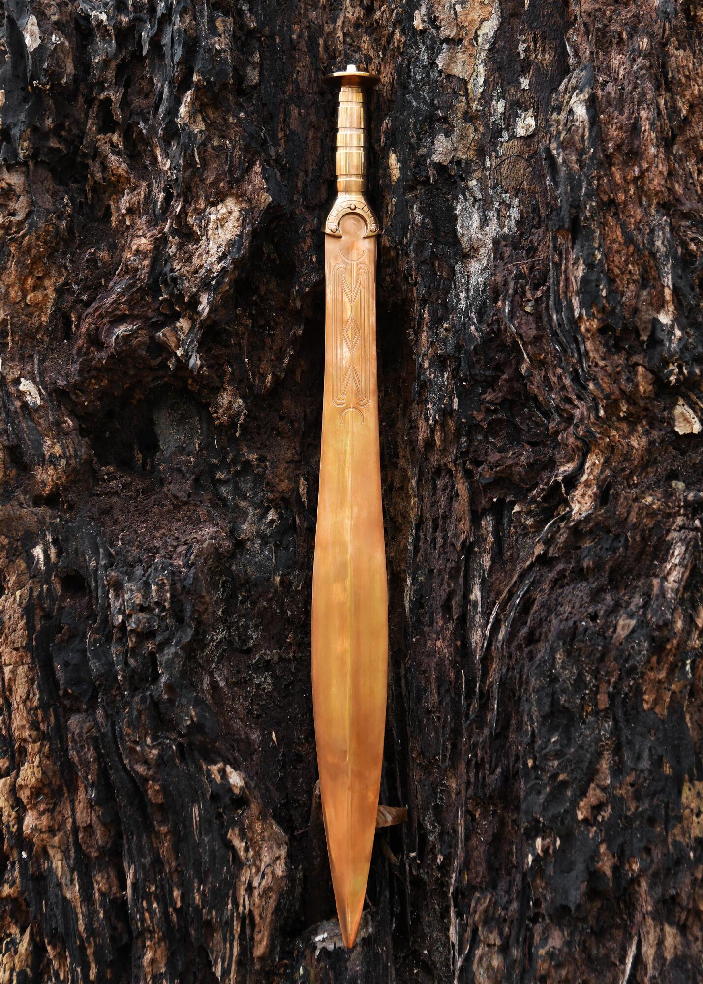 Bring Bronzealderens styrke og håndværk ind i din samling med dette imponerende keltiske sværd. ????️